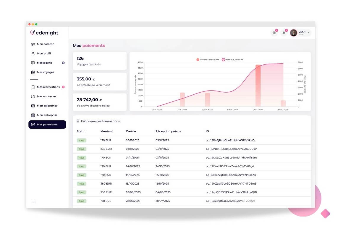 Chaque séjour terminé déclenche automatiquement le virement sur votre compte bancaire.