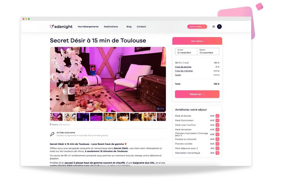 Votre love room bénéficie d’une visibilité optimale grâce :