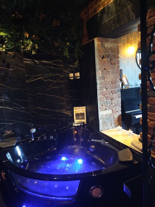 Détendez-vous dans la baignoire balnéo, laissez-vous envelopper par les bulles et les lumières tamisées avant de poursuivre votre soirée dans une ambiance sensuelle et raffinée.