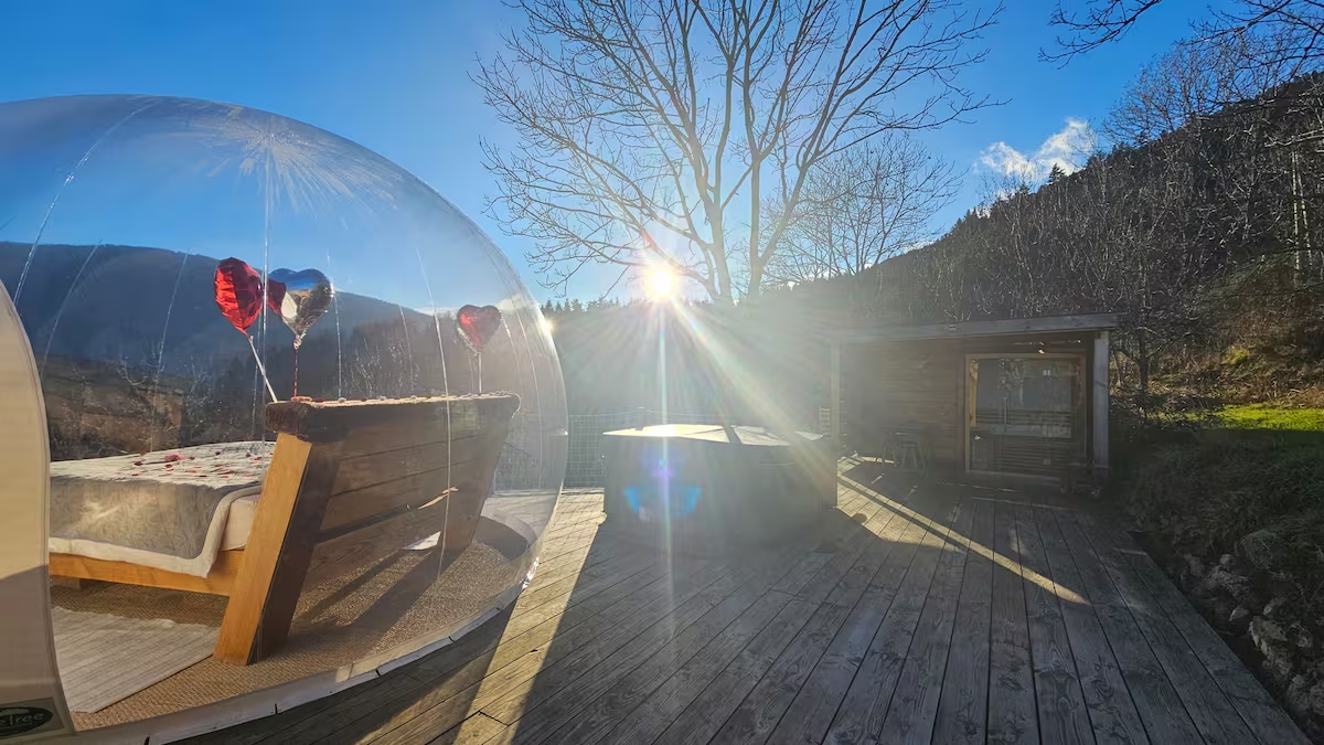 La Bulle d’Ardèche : Love room insolite avec spa privatif en Ardèche avec diner et petit-déjeuner inclus.