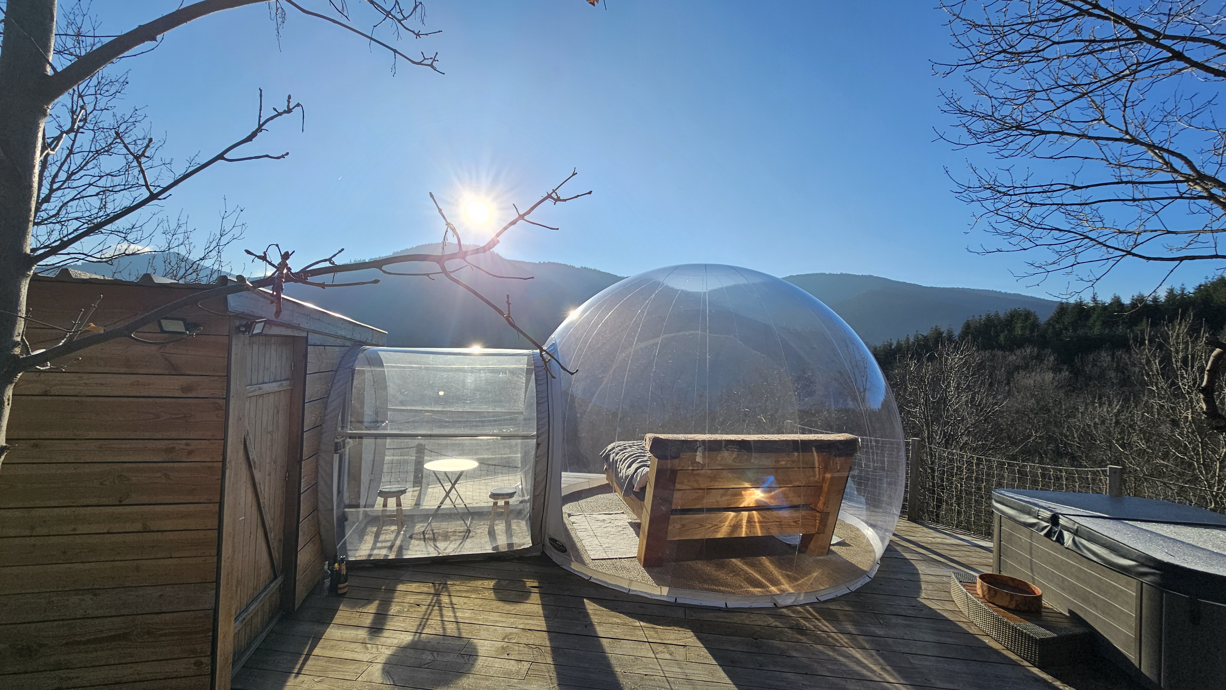 La Bulle d’Ardèche est une expérience insolite en pleine nature, nichée à 800 mètres d’altitude au cœur des montagnes ardéchoises. Idéale pour une escapade romantique à deux, elle offre une parenthèse hors du temps, entre calme, intimité et bien-être.
