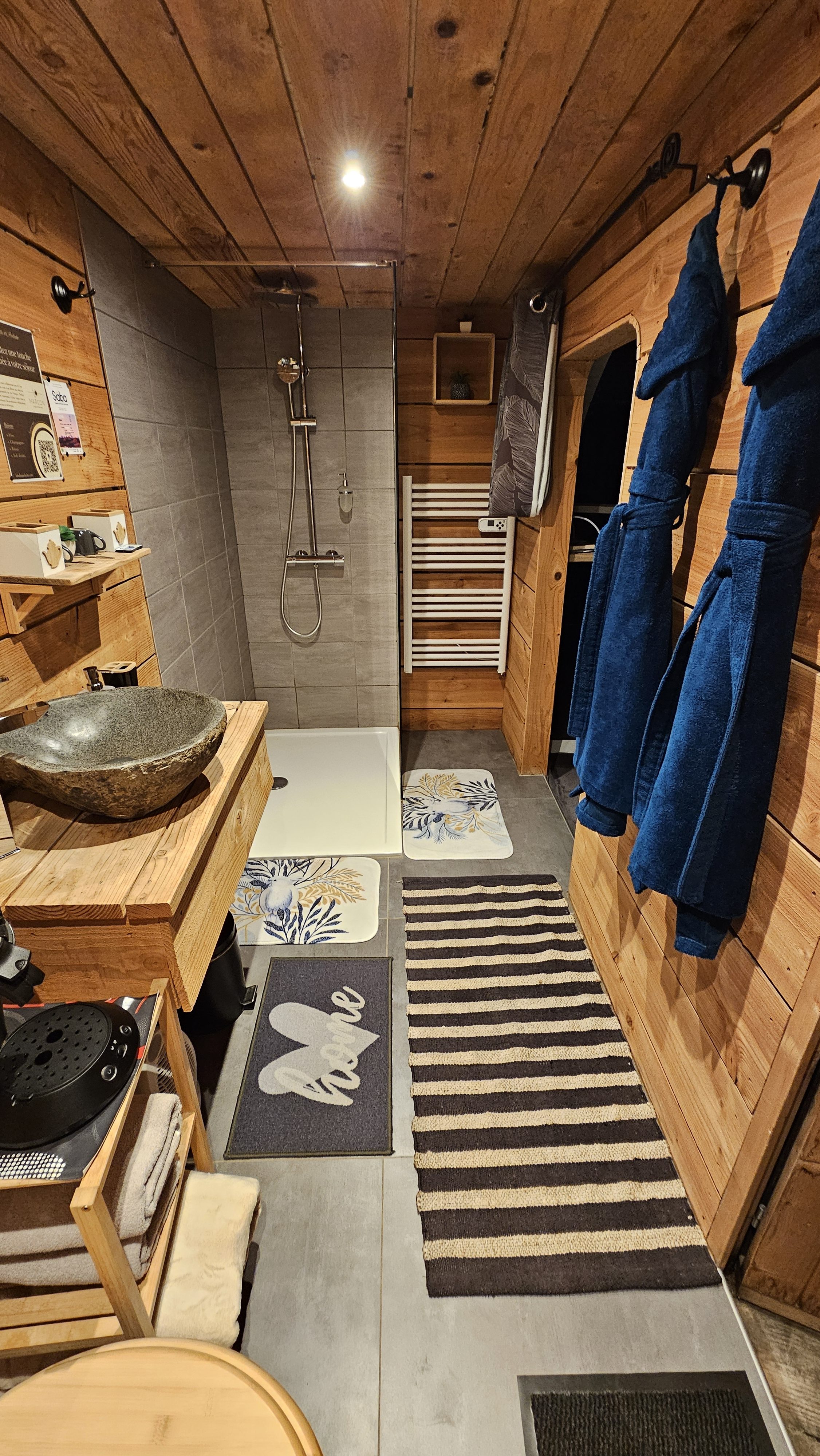 L’expérience comprend un lit king size haut de gamme, une salle de bain privative avec douche à l’italienne, ainsi qu’un jacuzzi et un sauna entièrement privatifs, accessibles toute l’année.