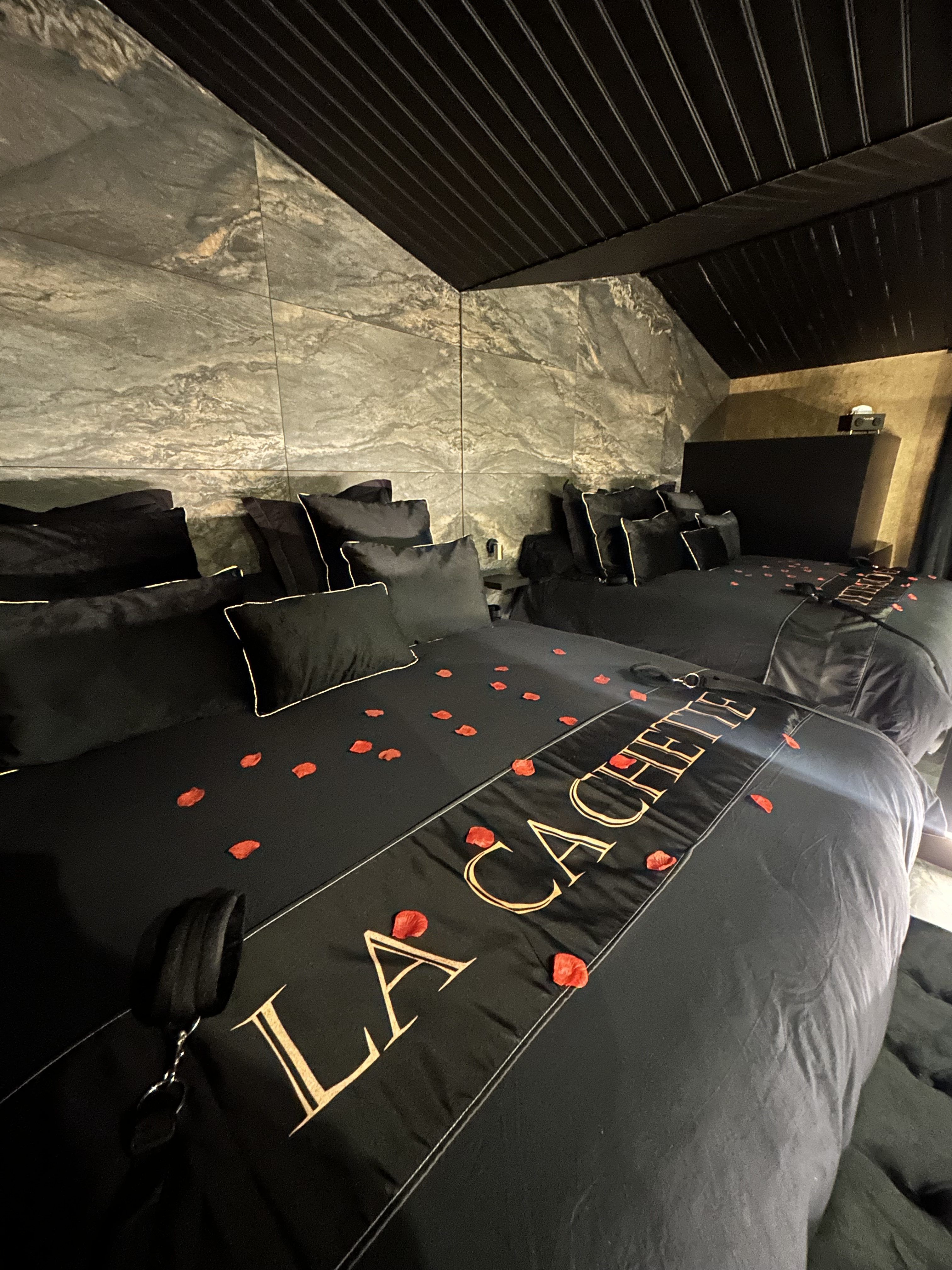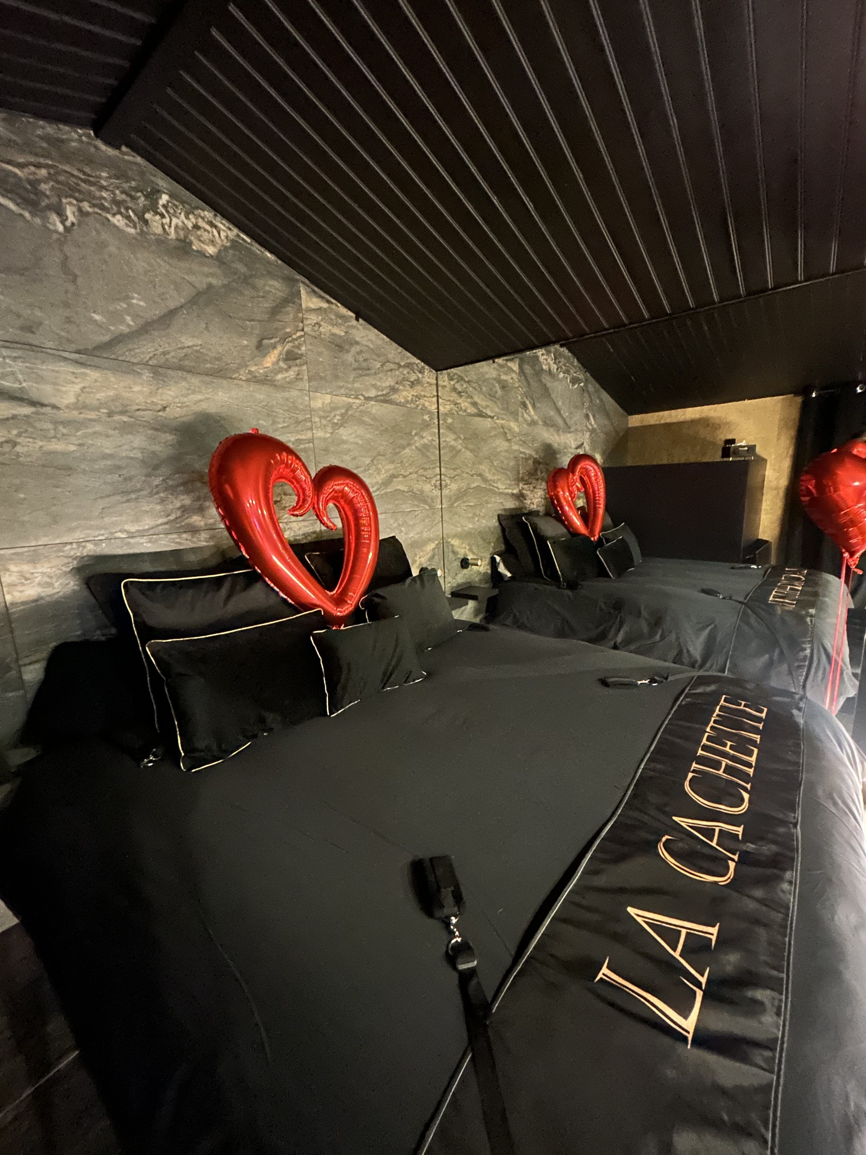 Bienvenue à La Cachette, une love room à La Rochelle, à deux pas du Stade Rochelais et de la mer. Ici, tout a été pensé pour vous faire vivre une parenthèse hors du temps, à deux. La Cachette porte bien son nom puisqu'une pièce secrète vous attend, pour éveiller vos sens et laisser libre cours à toutes vos envies. Sur 59 m² entièrement dédiés au plaisir et à la détente, vous profitez :