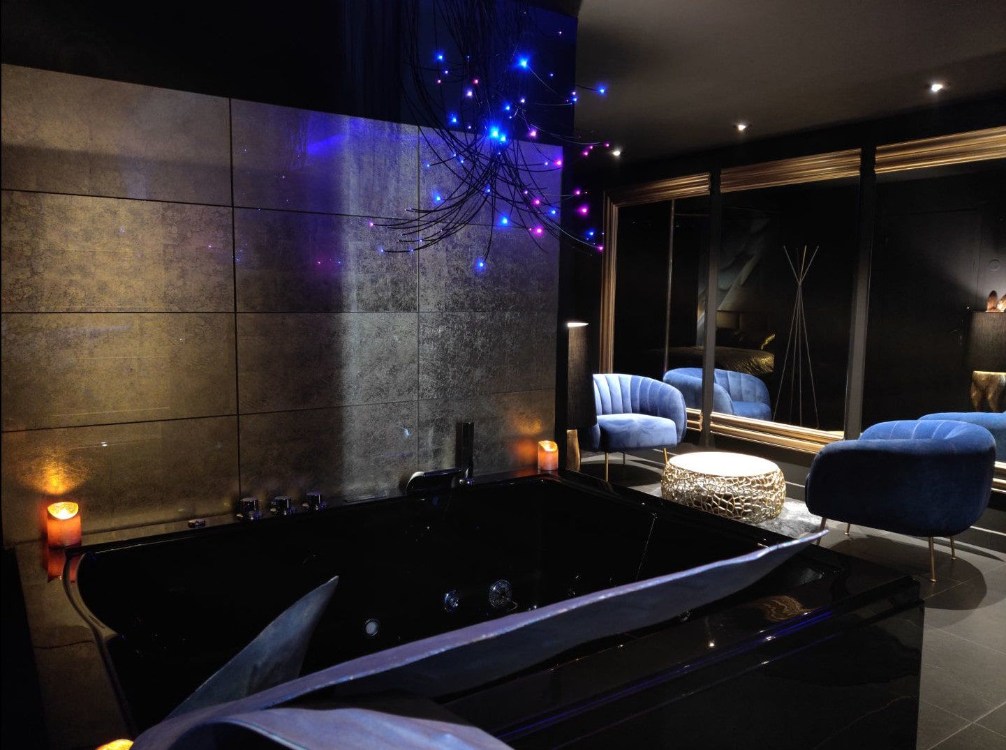 De votre arrivée à votre départ, vous ne penserez à rien dans cette suite de 45m² haut de gamme et high-tech. Profitez de nombreux équipements et services : Jaccuzi full options, sauna infrarouge pierre de sel, balançoire coquine, fauteil tantra, mobilier coquin, mur d'attaches, chargeurs, Wi-fi fibre, écran de cinéma, terrasse privative, fouets, masques paddles et un tas d'accessoires, nécessaire de toilette, literie..
