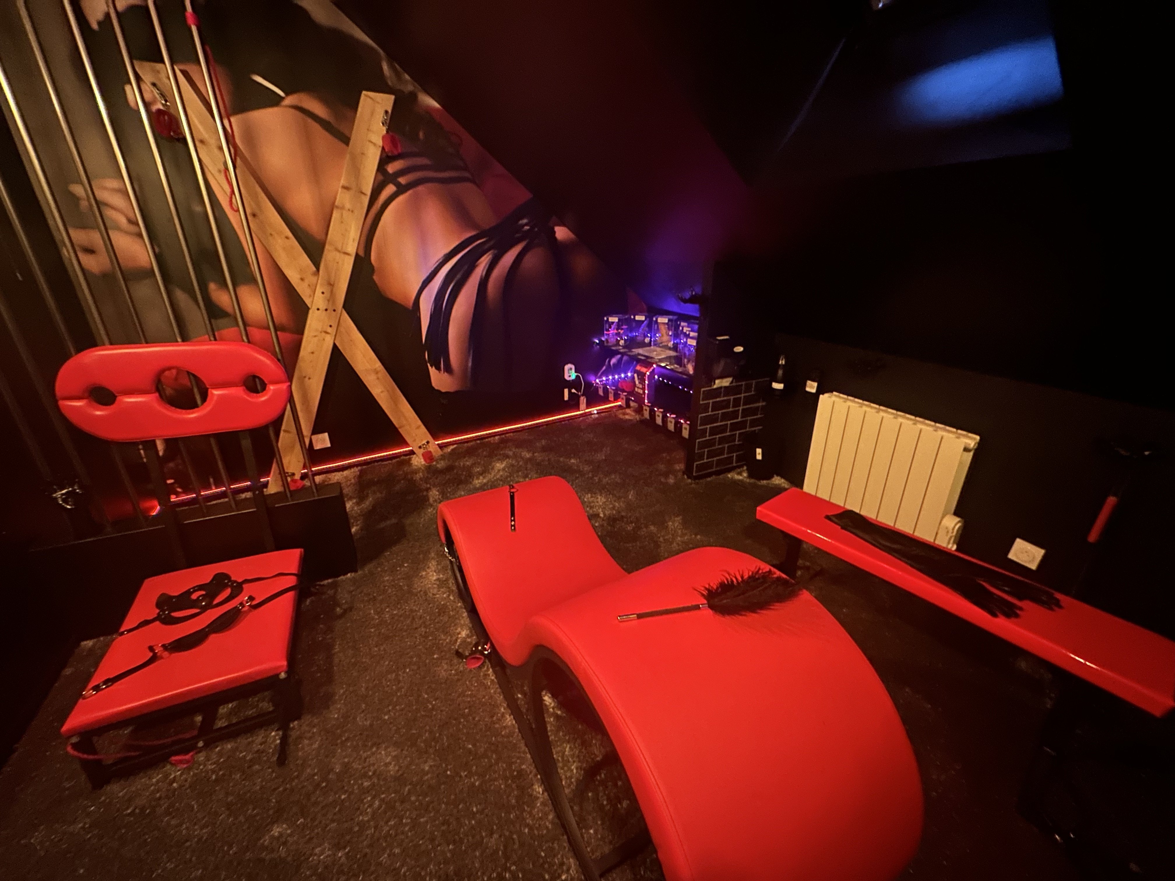 Le Donjon, notre secret room entièrement équipée (croix de Saint-André, mobilier spécifique, accessoires variés), vous invite à explorer vos fantasmes en toute sécurité et complicité. 💝 Petites attentions incluses :