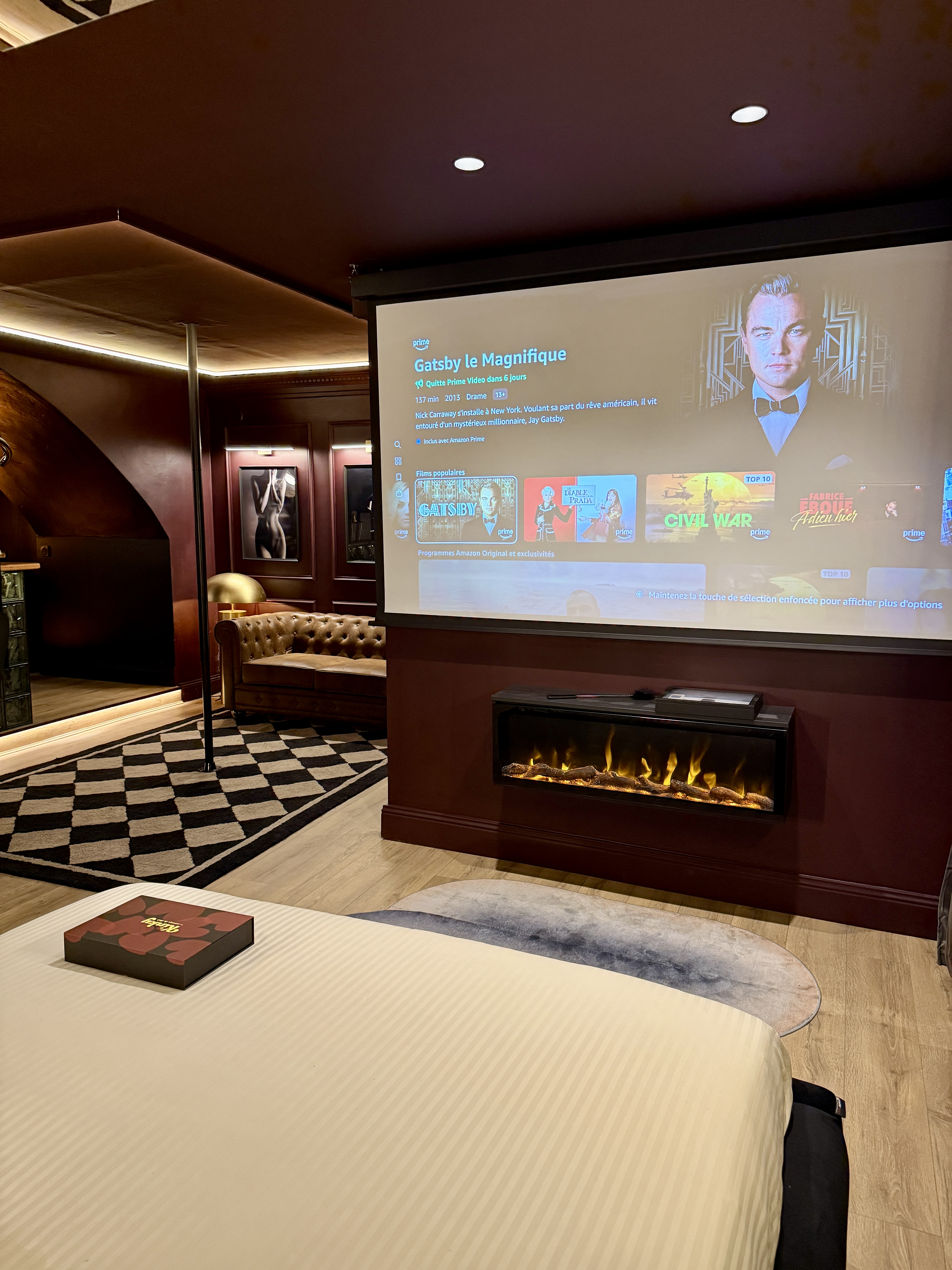 - Un écran de projection motorisé avec Amazon Prime inclus