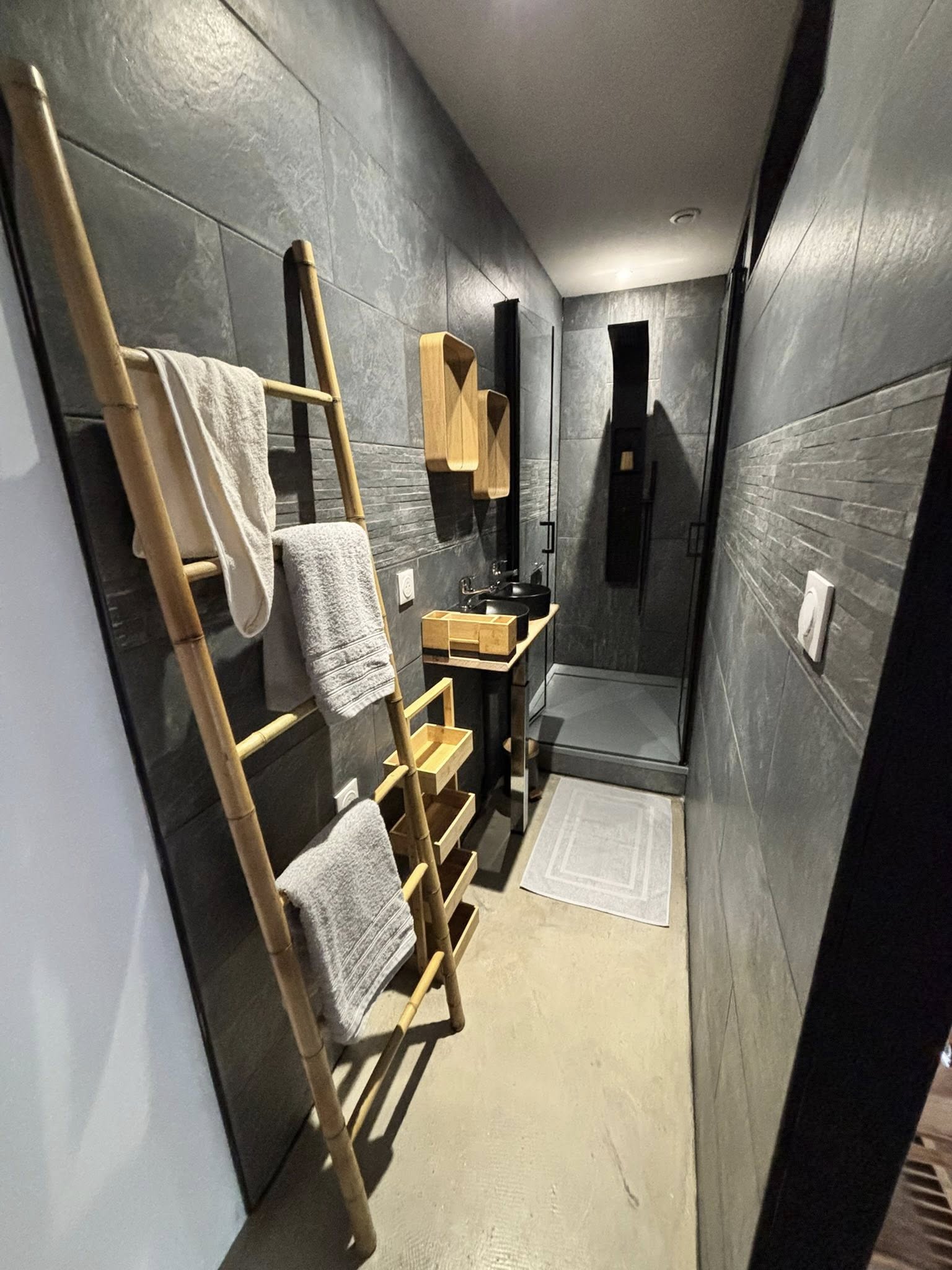 Il s’agit d’un logement tout neuf, personne ne l’a encore jamais occupé, il manque quelques accessoires de décoration sur les photos… Je vous laisse la surprise pour quand vous viendrez passer un moment dans l’Interlude