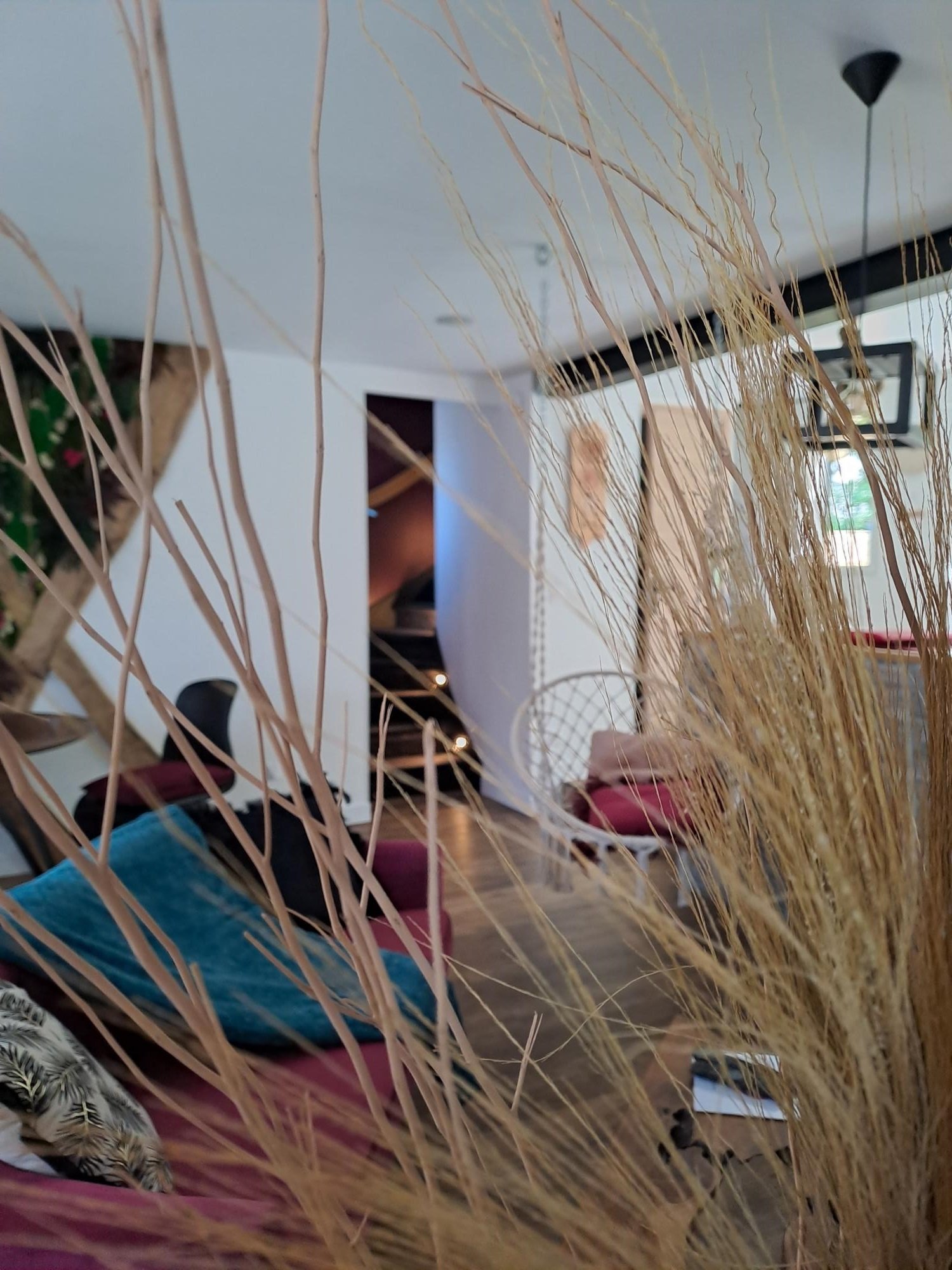 Nichée dans un écrin de verdure, notre love room de 70 m² est entièrement privatisée pour garantir votre intimité et votre confort. Dès votre arrivée, laissez-vous séduire par une décoration soignée qui allie chaleureux bois et touches végétales, créant ainsi une atmosphère douce et romantique.