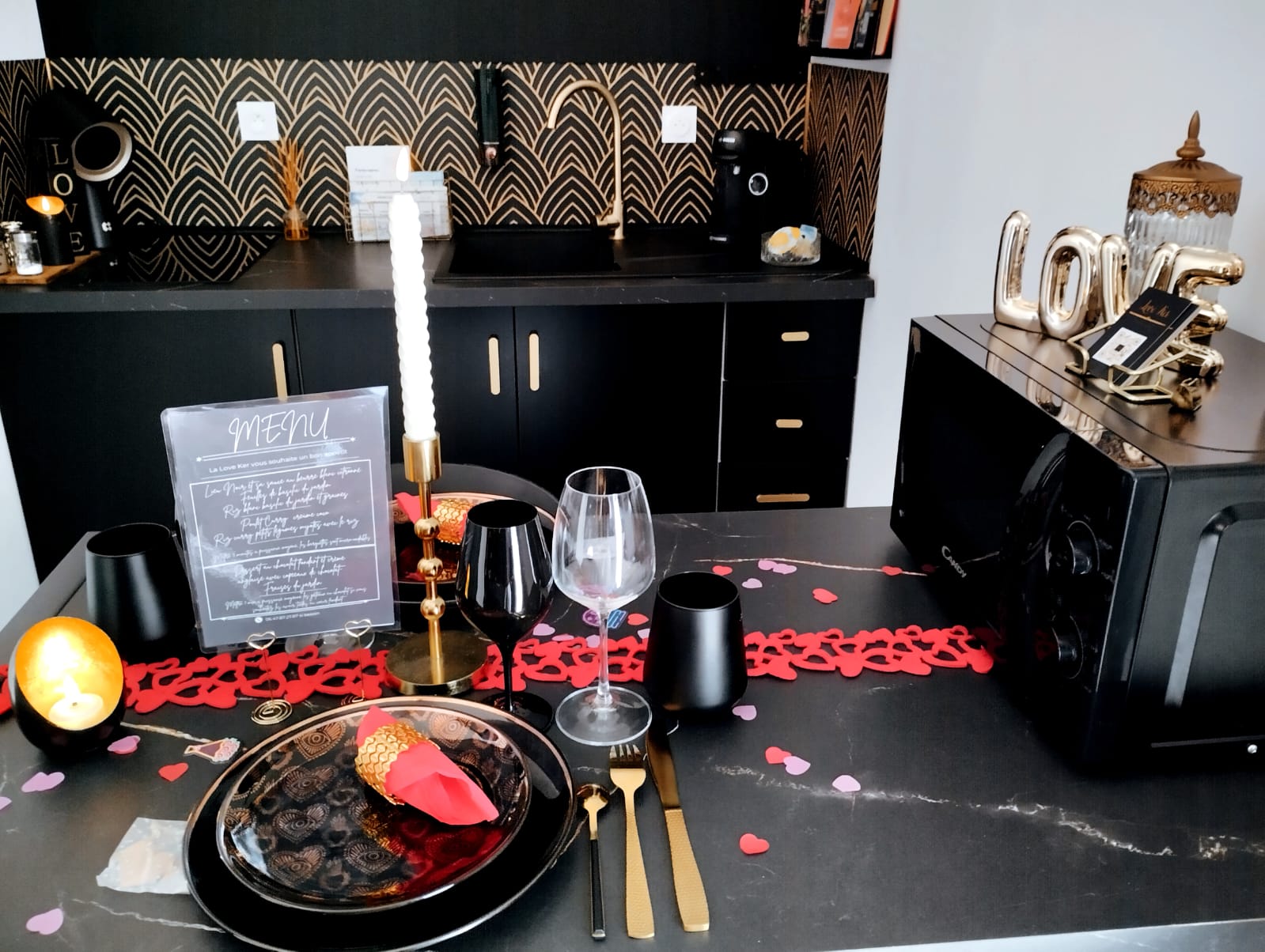 - Café, thé et options romantiques sur demande (fleurs, mots doux)