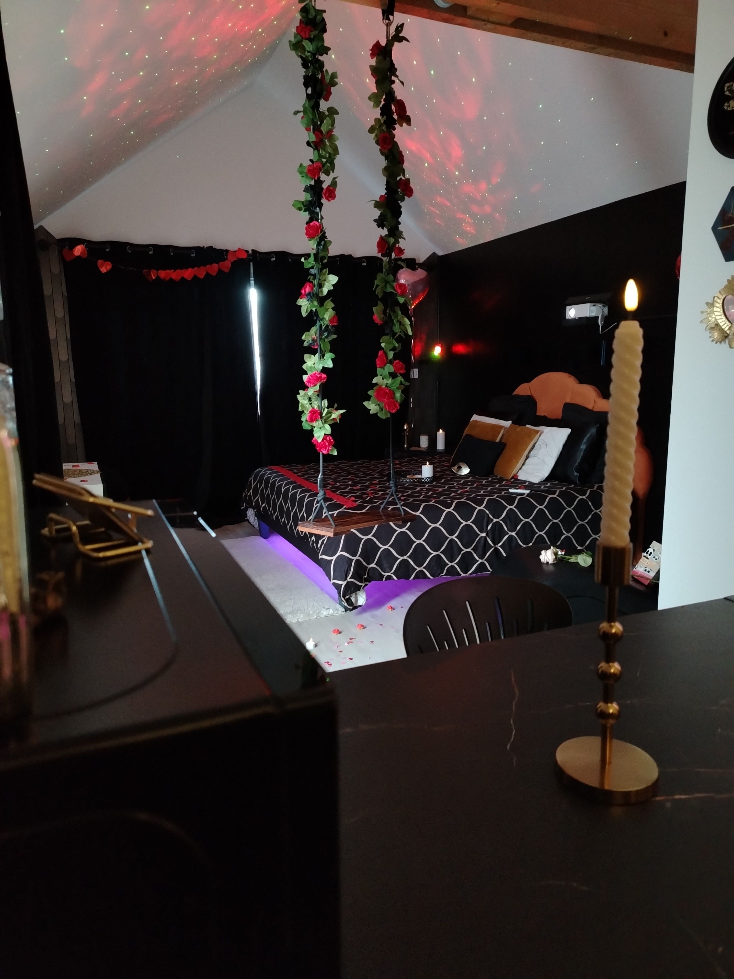 - Lit King size, écran géant et fauteuil Tantra pour des instants complices