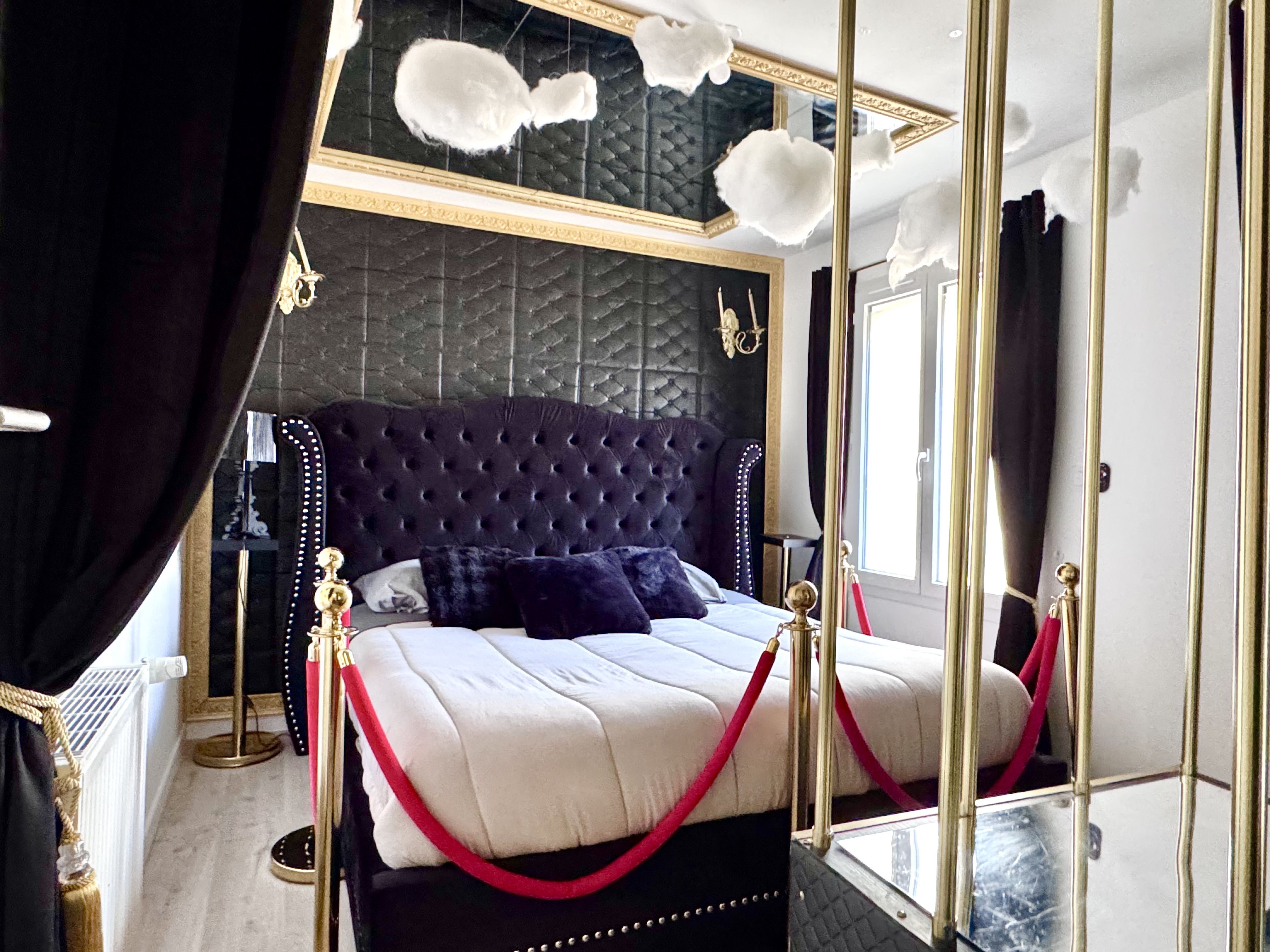 🔥 Une atmosphère sensuelle assumée La chambre met à l’honneur l’élégance et l’audace, avec un univers inspiré du glamour et des jeux plus intimes pour celles et ceux qui souhaitent explorer. L'accès à la secret room est en option (50€). Pourquoi choisir cette love room ?