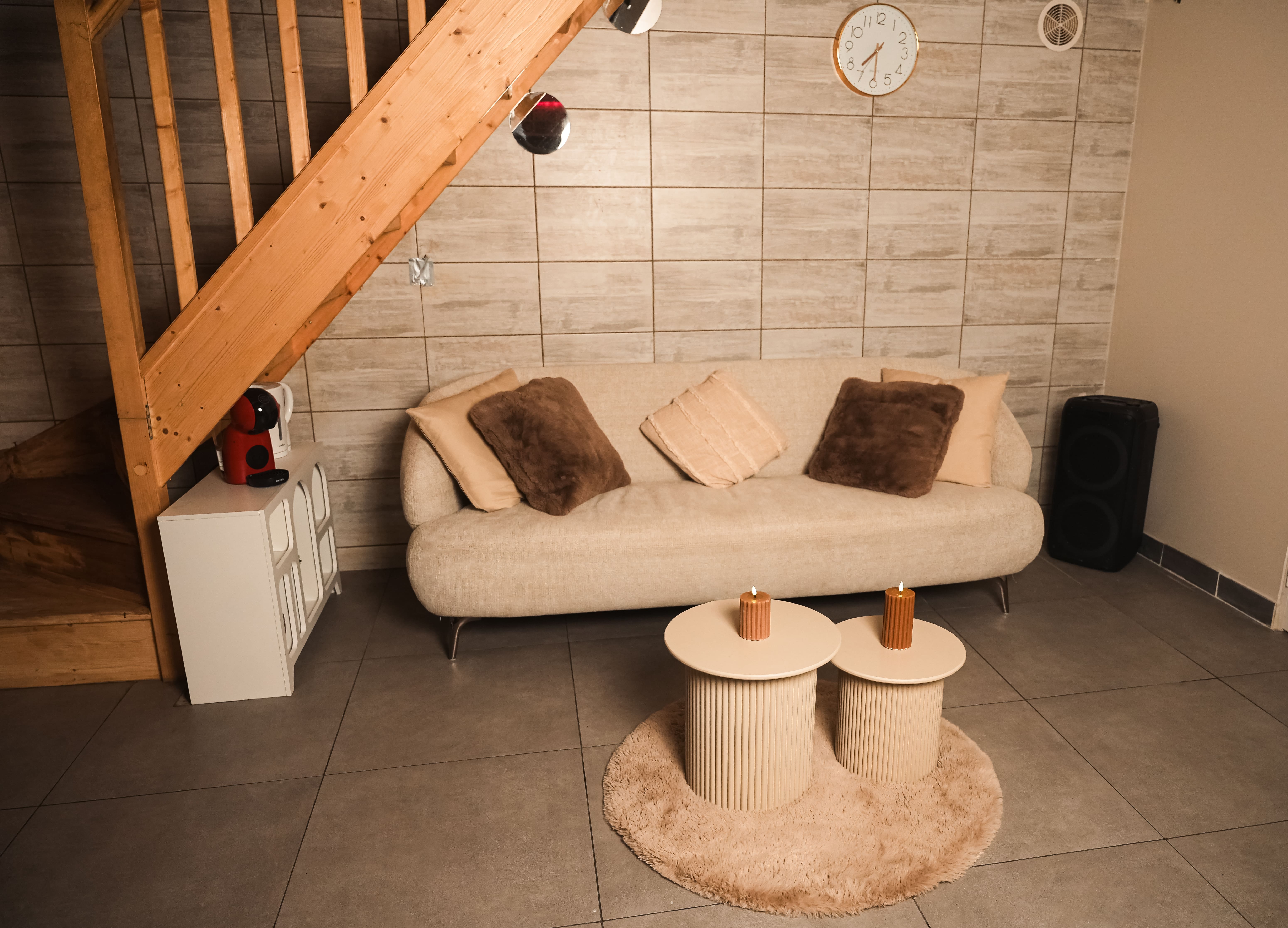 🛏️ Espace nuit en mezzanine : ambiance intime et chaleureuse.