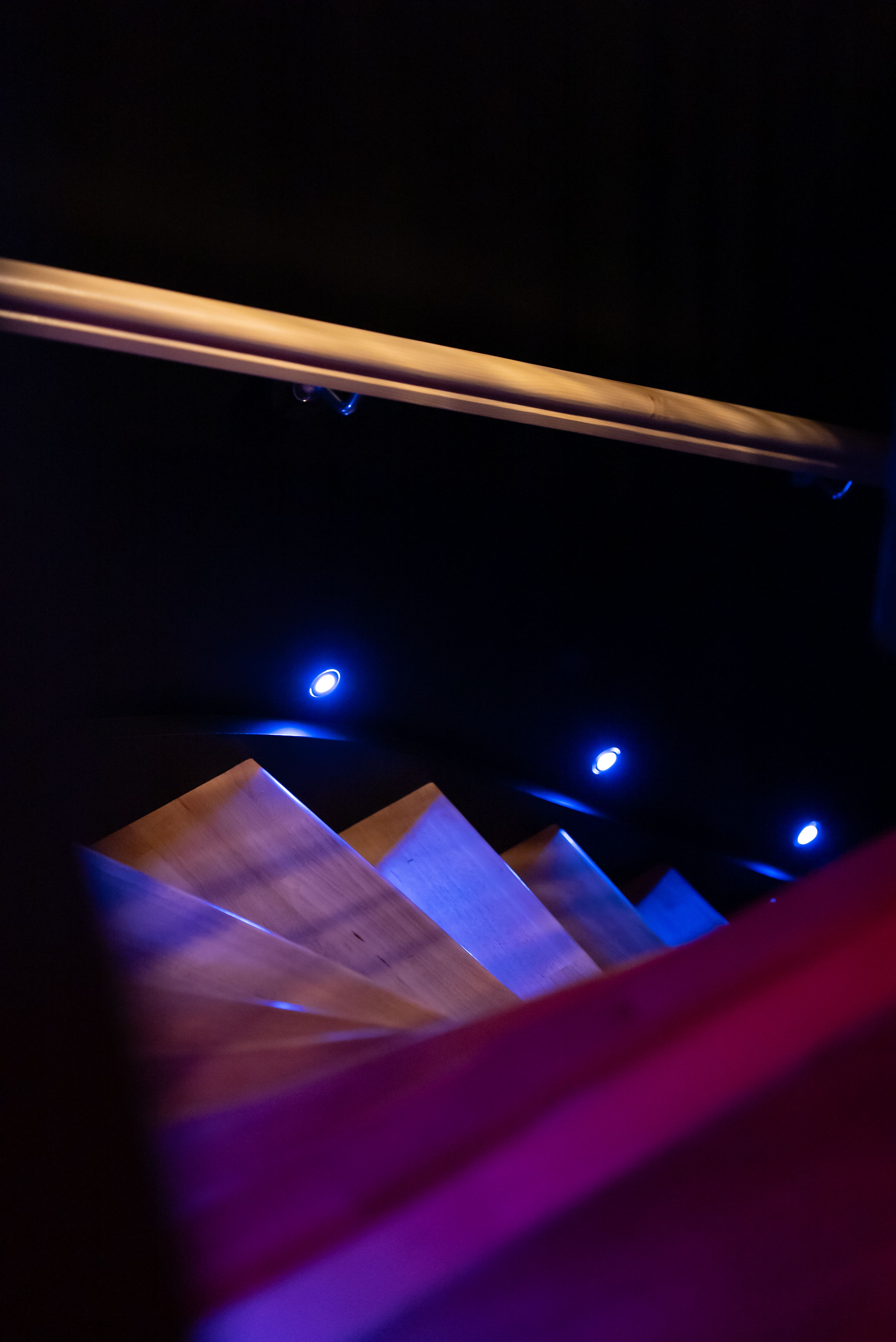 Un escalier mène à la mezzanine, un espace confidentiel dédié à la complicité et à l’exploration.