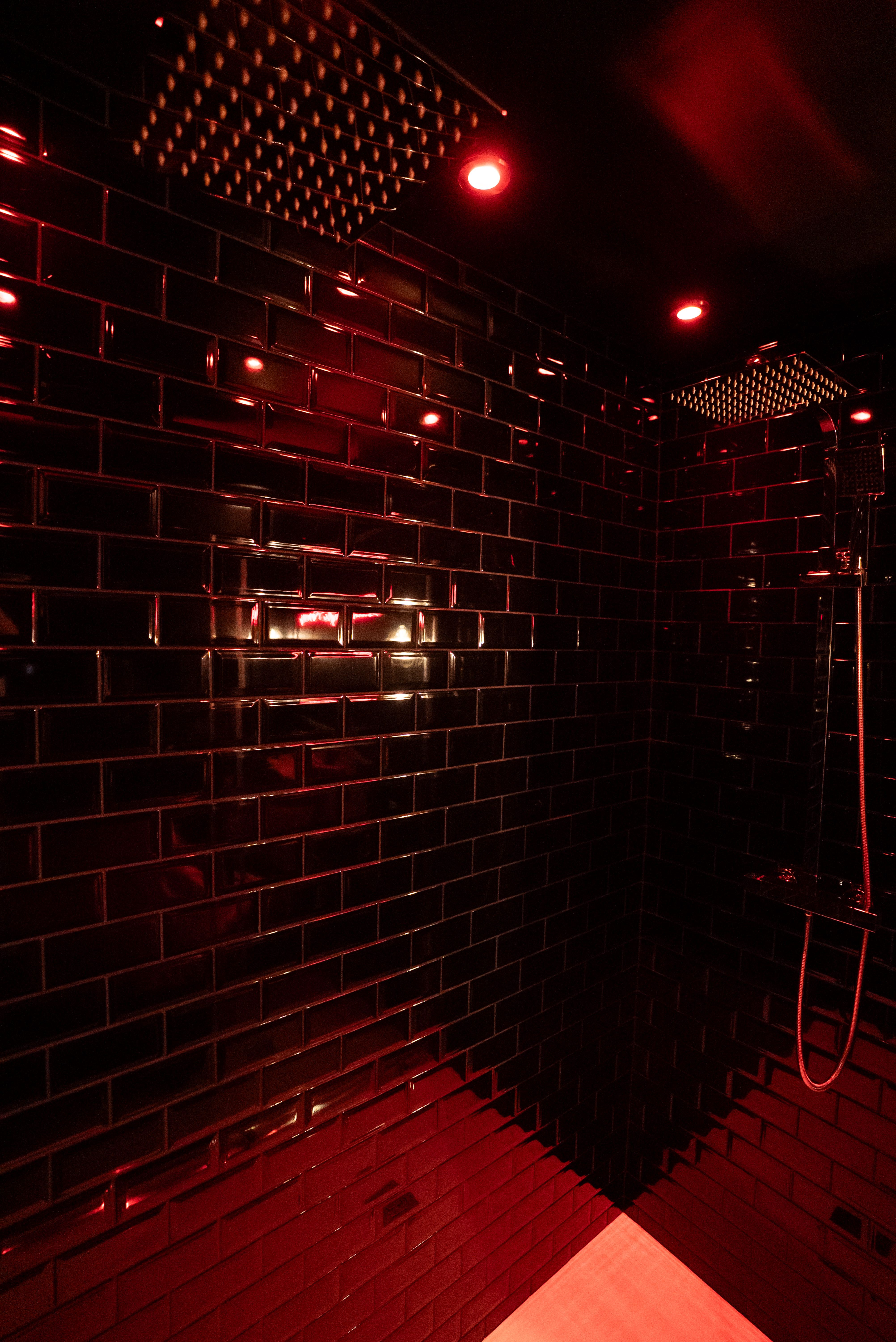 Les miroirs placés au plafond et sur un mur agrandissent l’espace et transforment chaque moment partagé en expérience sensorielle unique.