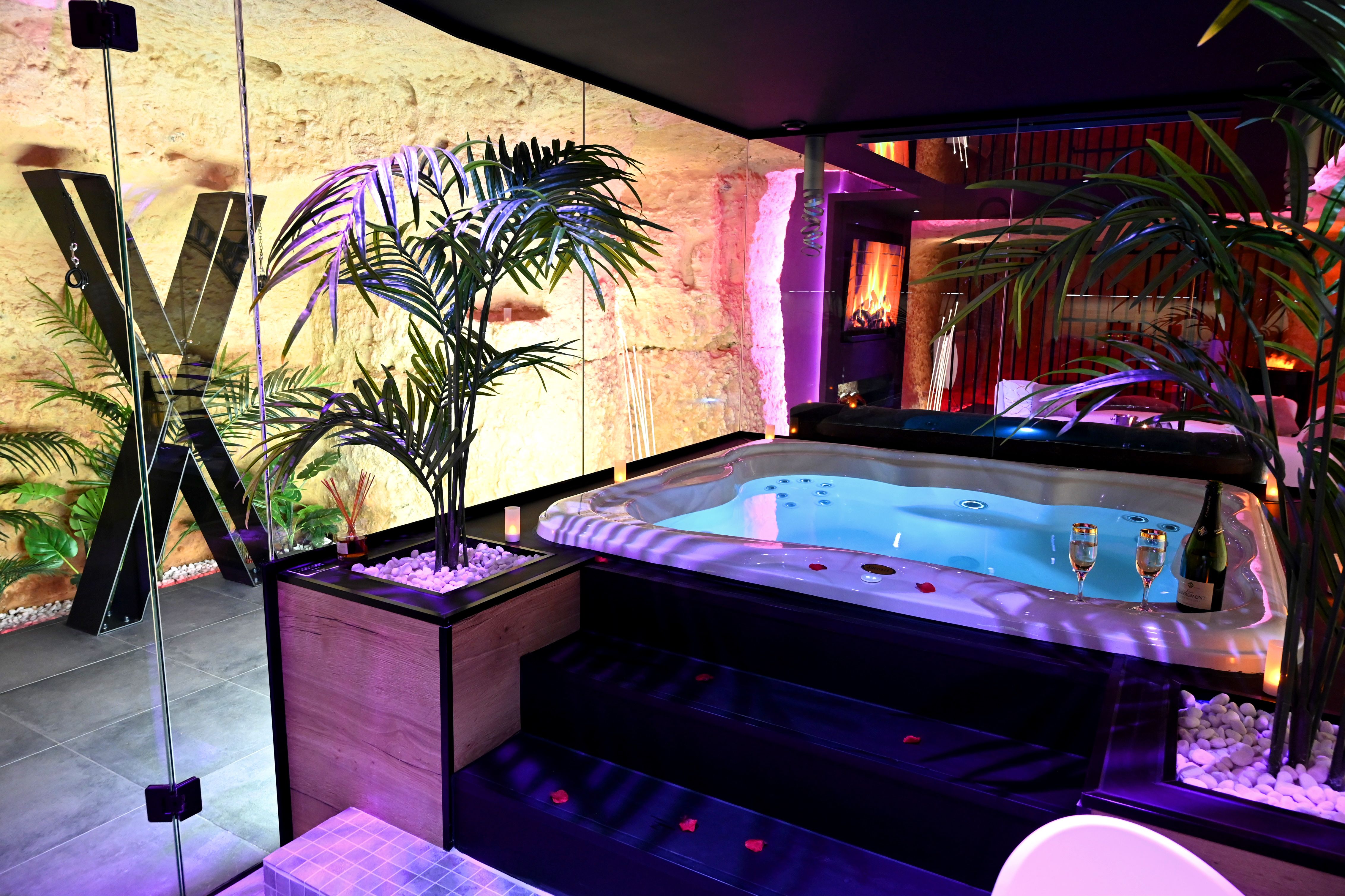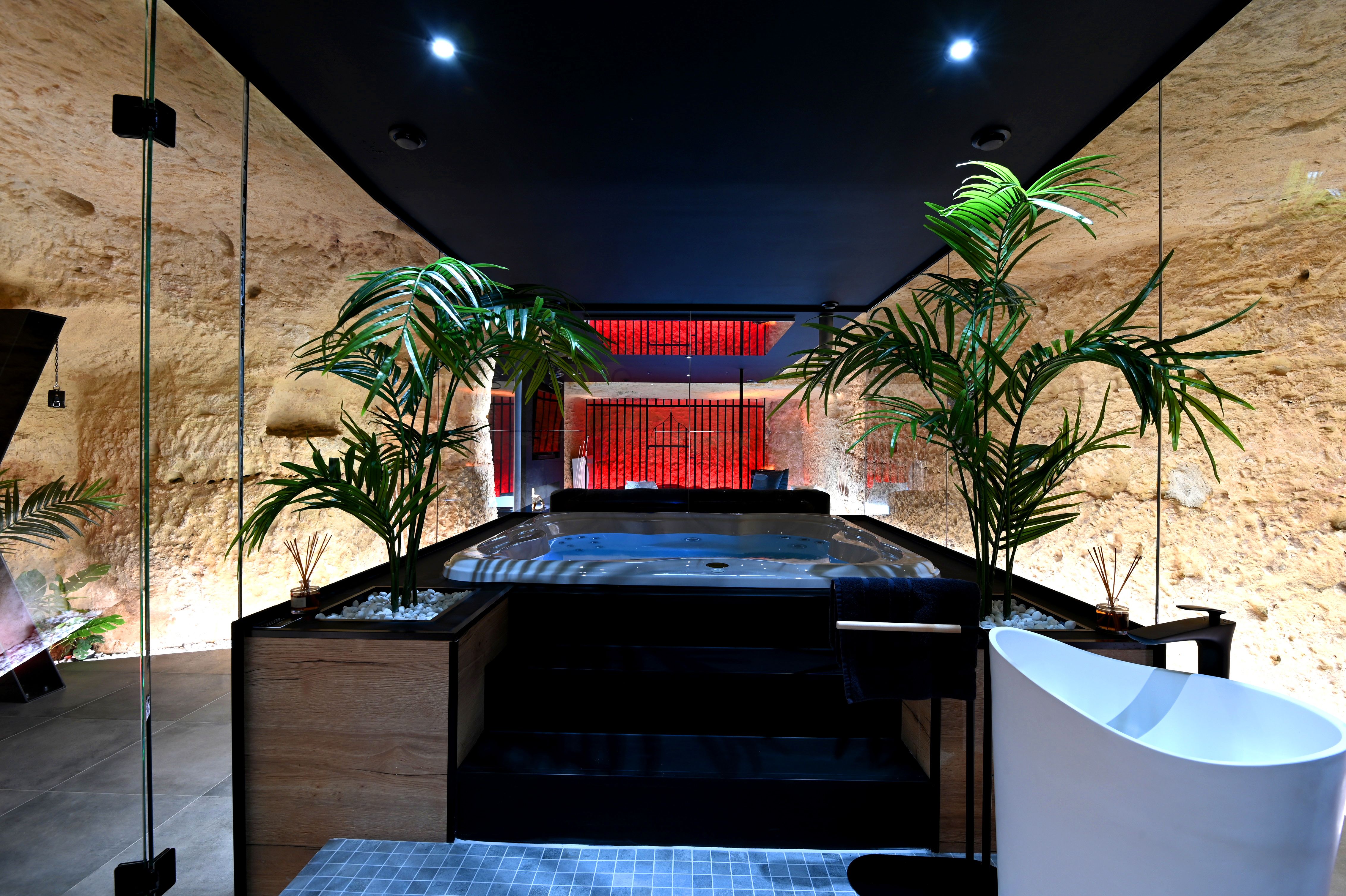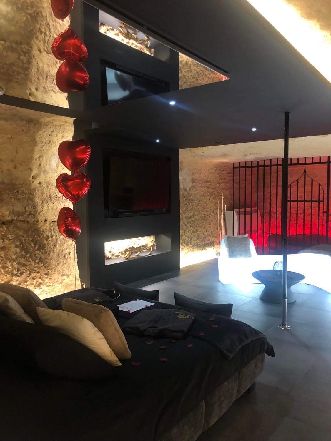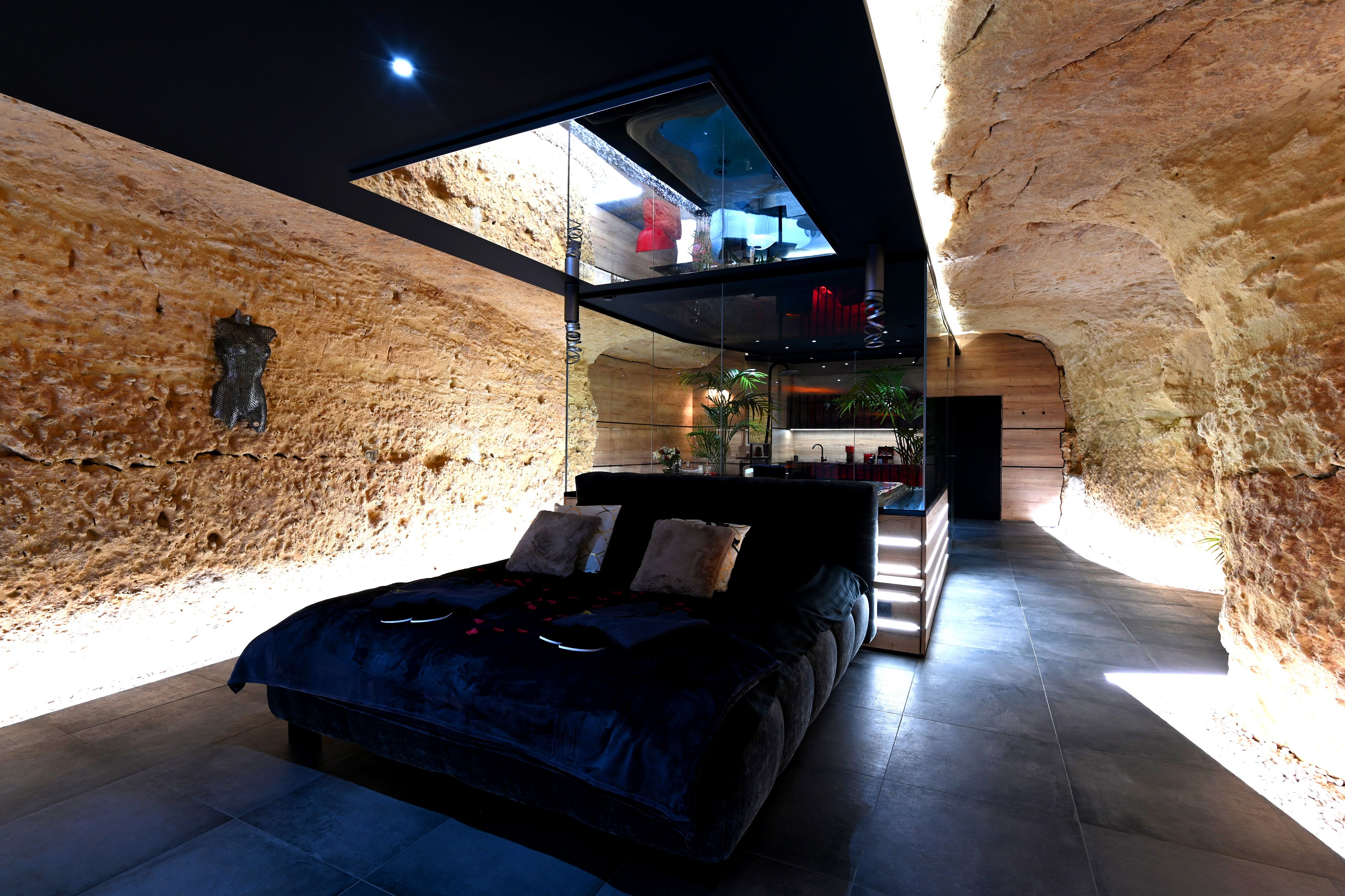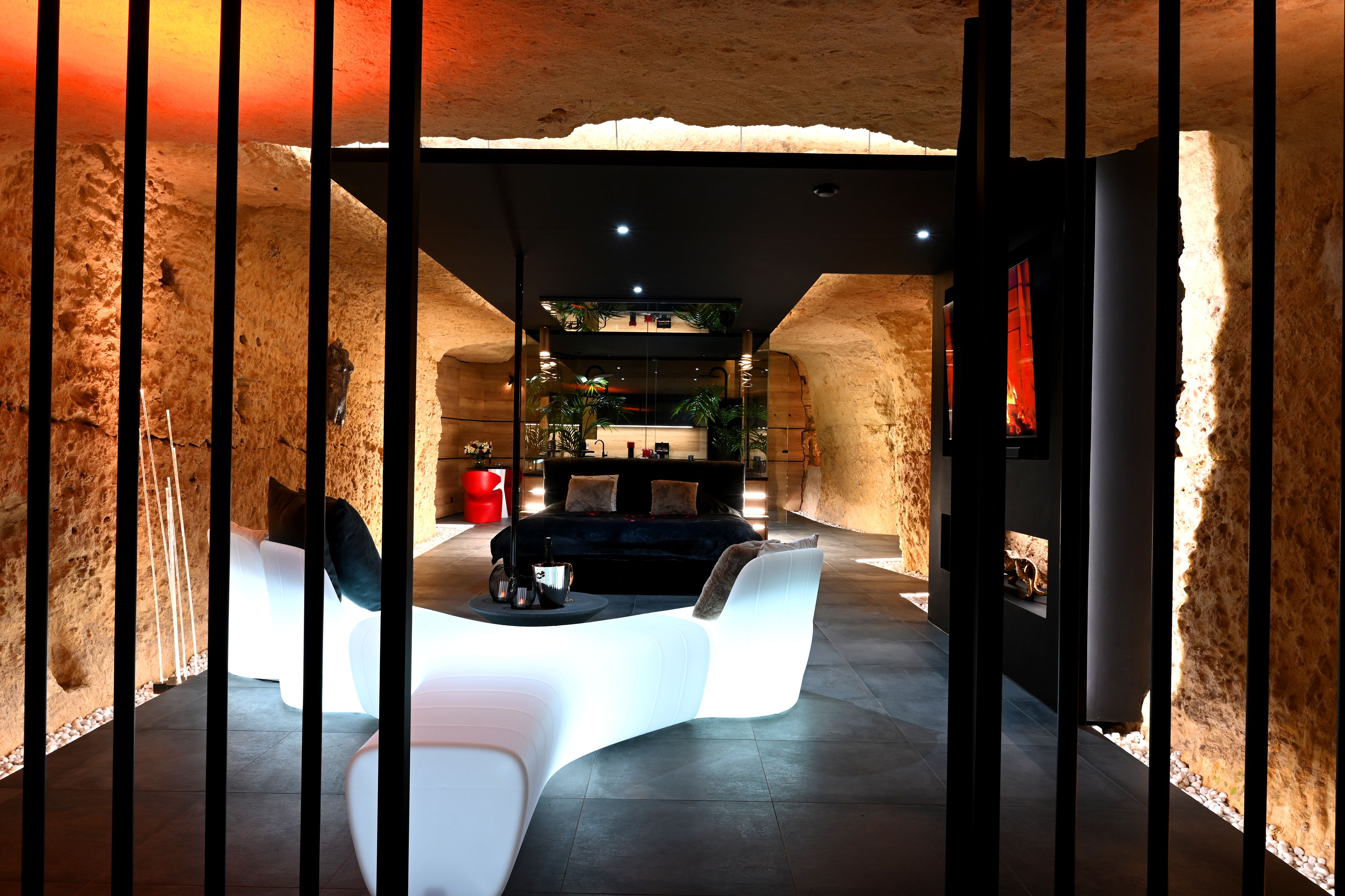 Cette love room à Tours est située au cœur de la roche et offre une intimité et un confort exceptionnels, combinés avec un cadre naturel magnifique.