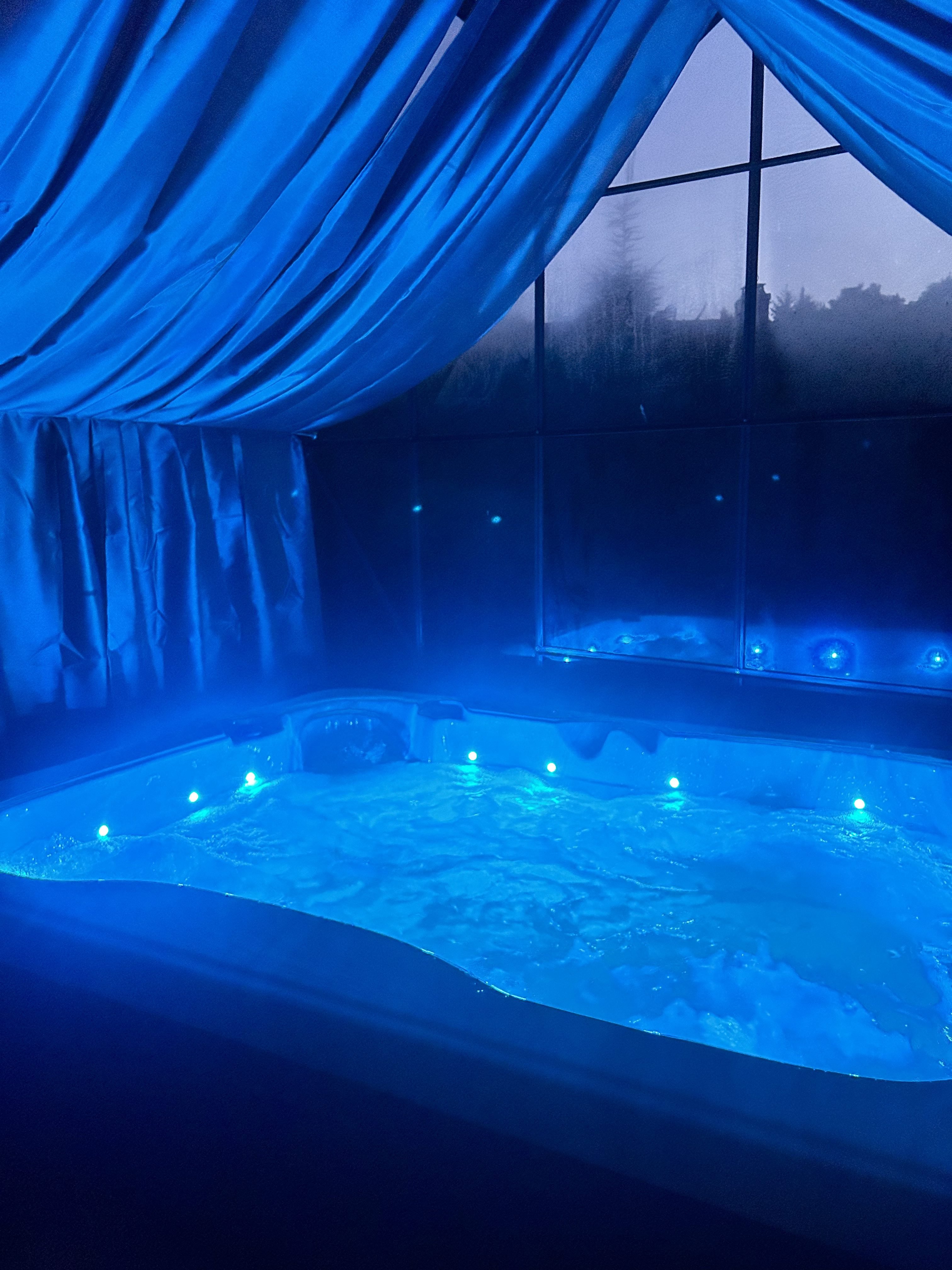 - Jacuzzi privatif sous serre vitrée, une expérience insolite et féérique, été comme hiver.