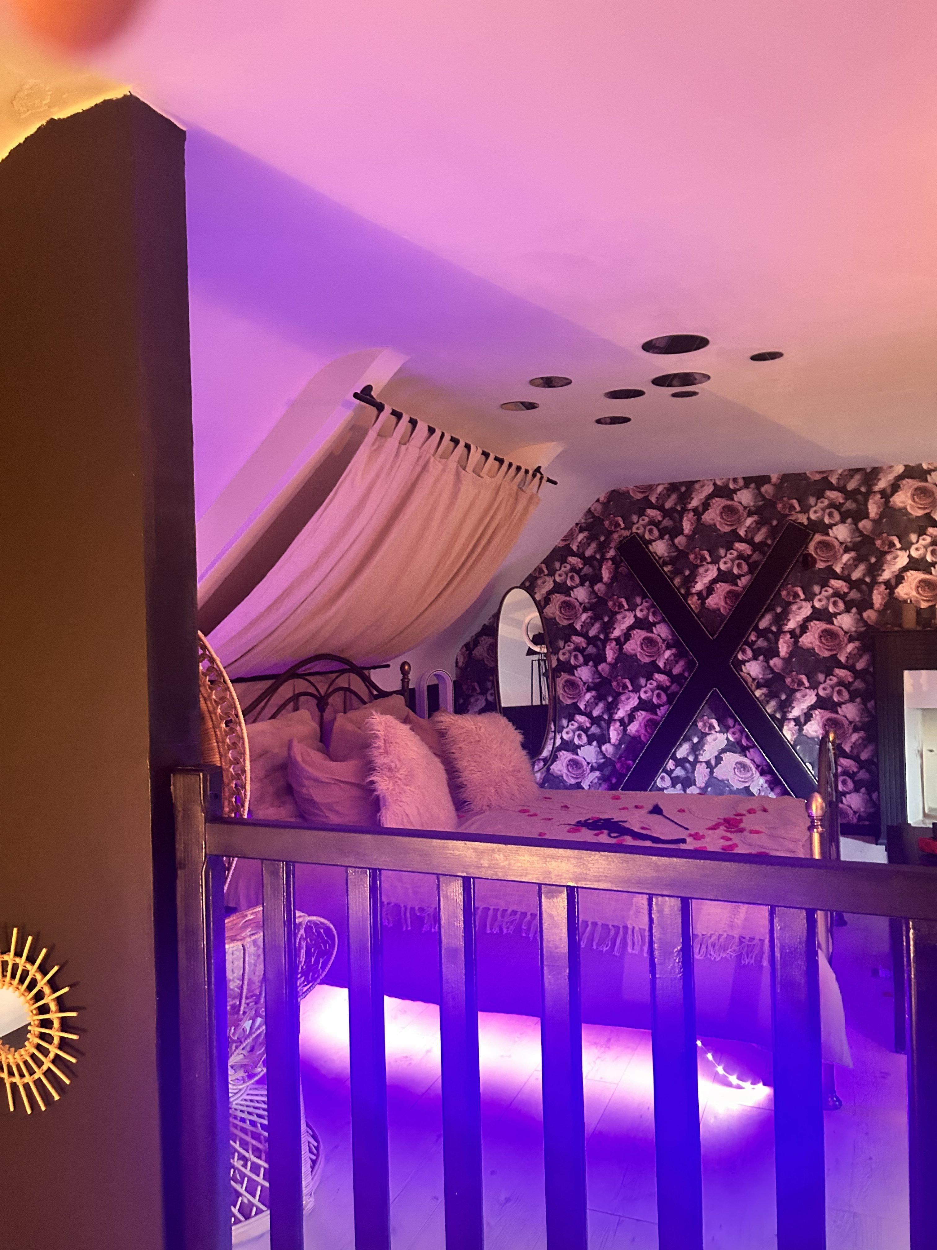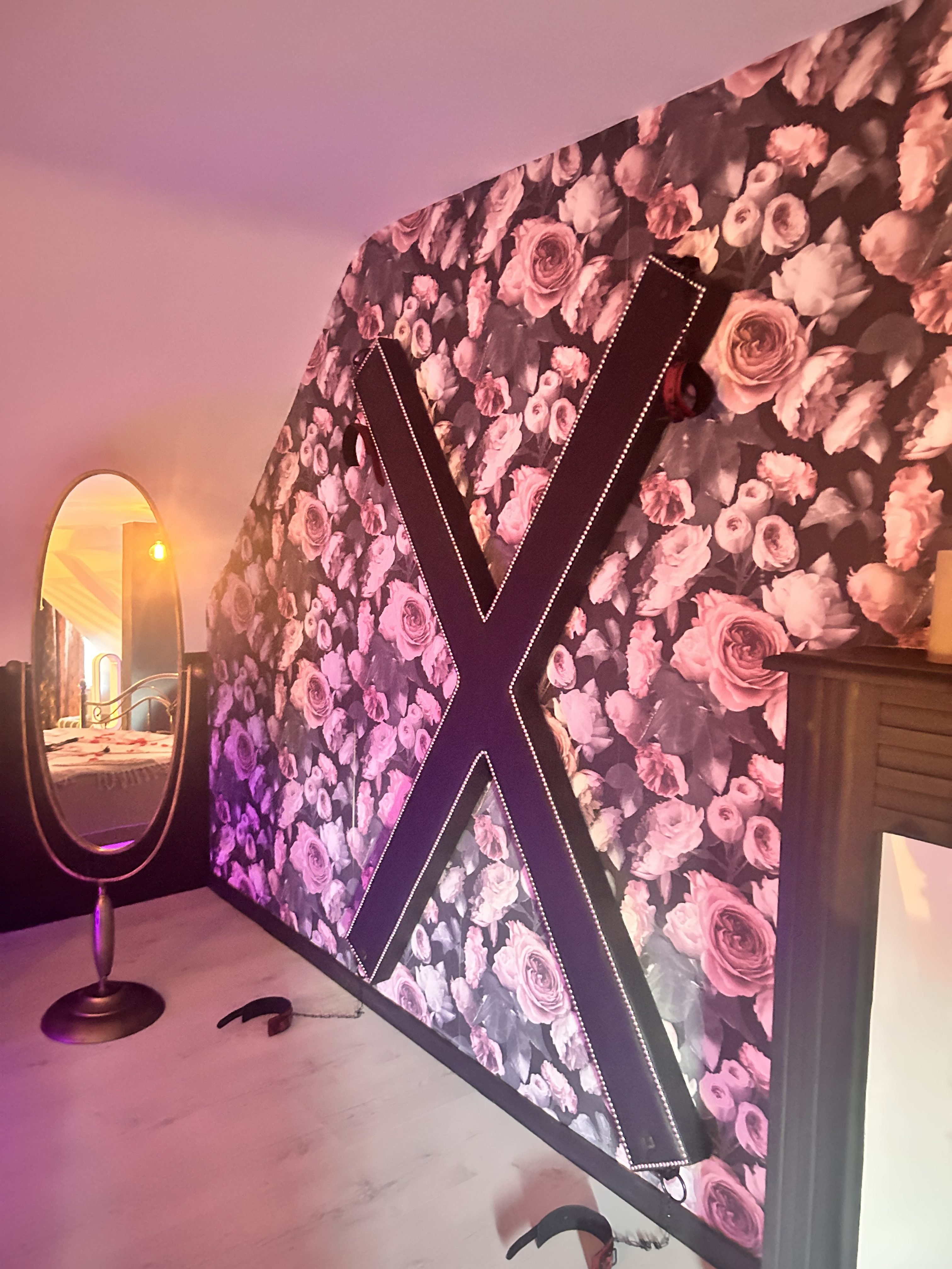 - Croix de Saint-André et barre de pole dance, pour explorer vos envies en toute intimité.