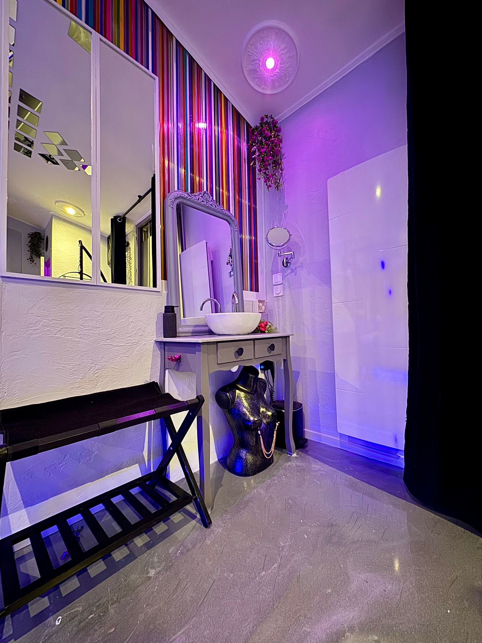 Dès votre arrivée, l’ambiance donne le ton : jeux de lumières personnalisables, atmosphère feutrée, décoration colorée et raffinée. Ici, chaque détail invite à la déconnexion et à l’exploration à deux.