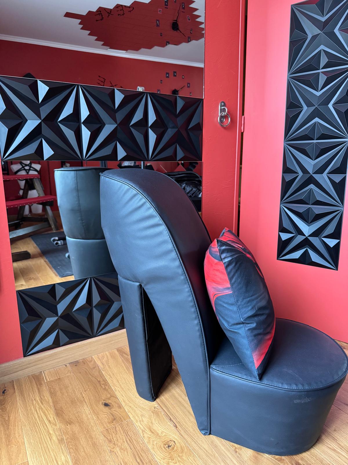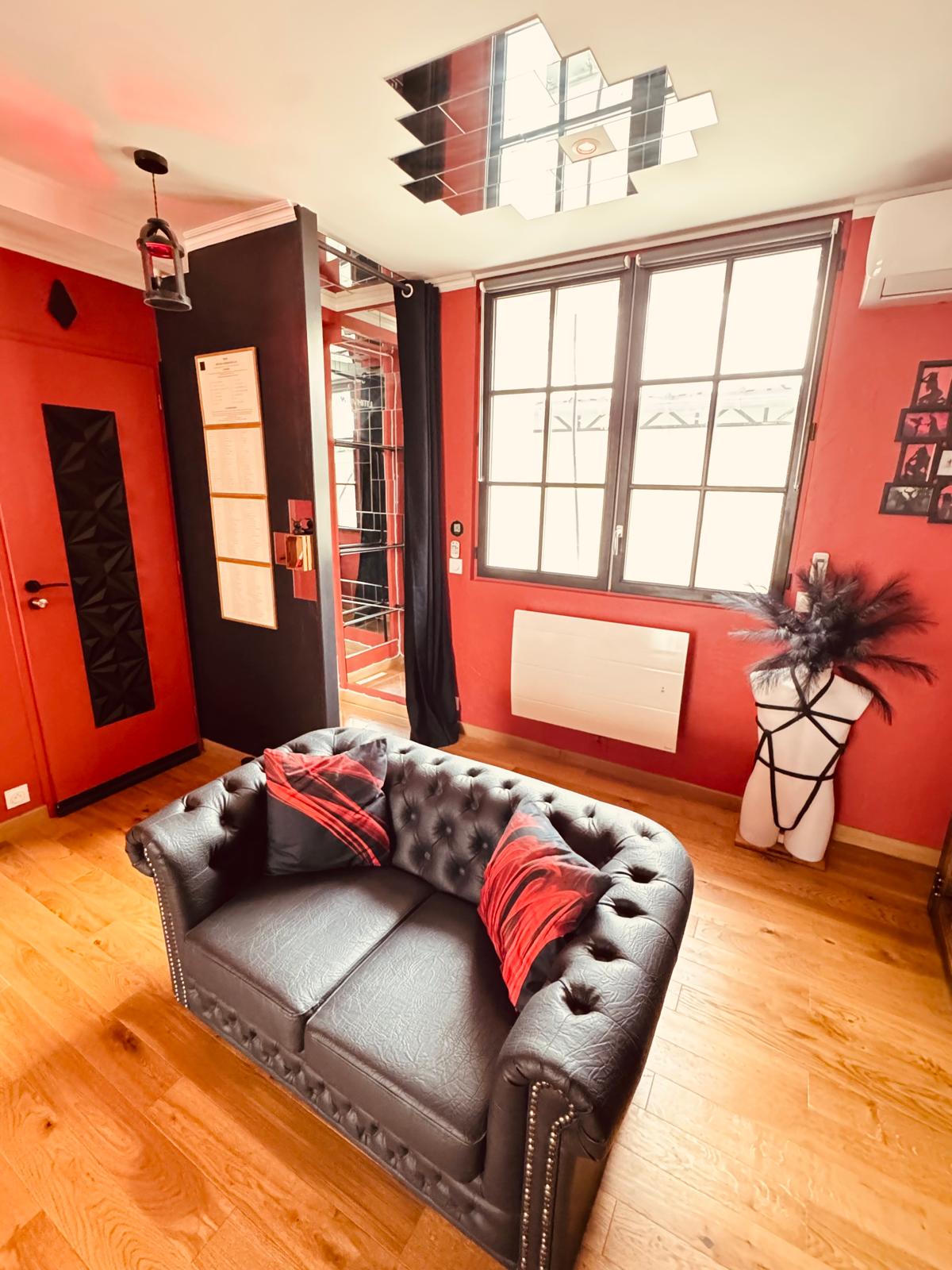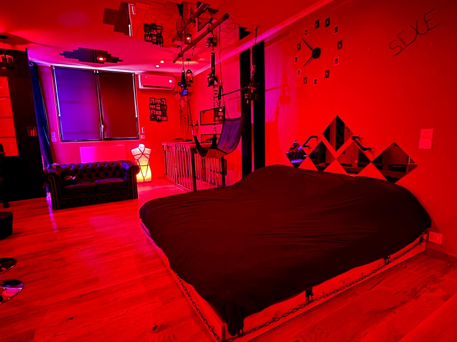 Un espace pensé comme une véritable scène érotique, où chaque meuble, chaque lumière et chaque miroir sont là pour sublimer vos jeux et libérer vos fantasmes.