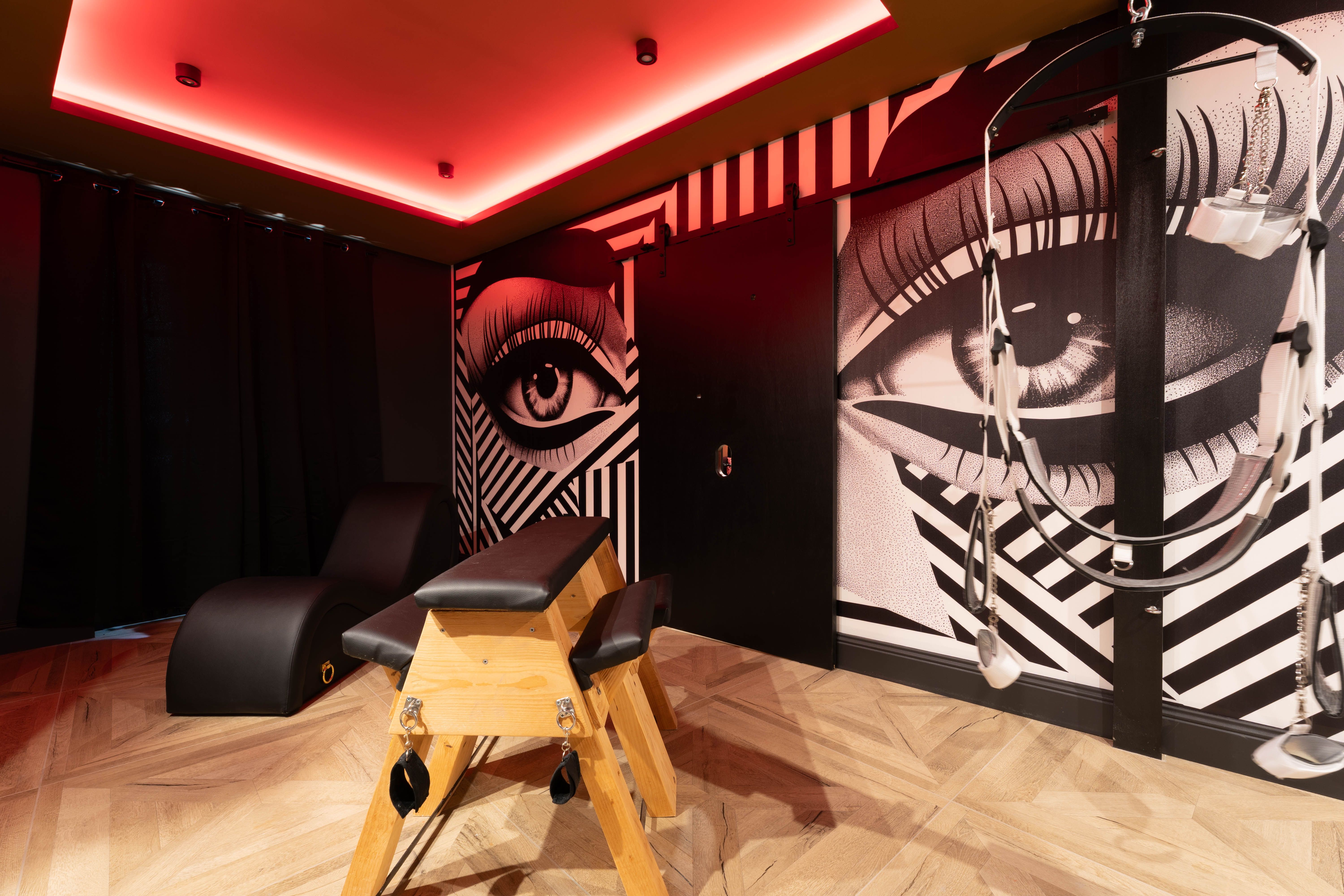 • Relaxation : Profitez d’un jacuzzi-balnéo et d’une vaste douche XXL pour des instants détente • Passion & sensations : Lit king-size à baldaquin renforcé, Croix de Saint-André, carcan, banc à fessées… un ensemble pensé pour les jeux BDSM. • Exploration : Glory hole, sofa tantrique, balançoire érotique, chaise de contrainte et mobilier spécialisé pour varier les expériences. Accessoires fournis (fouet, paddle, martinet, menottes, corde de bondage, etc.) pour laisser libre cours à vos envies. • Boutique érotique sur place : vente d’objets sensuels pour prolonger l’expérience. • Confort absolu : Cuisine équipée comme à la maison pour préparer vos repas en toute autonomie. • Divertissement : TV connectée (Netflix inclus) + Wi-Fi haut débit gratuit. • Discrétion totale : Entrée et sortie entièrement autonomes.