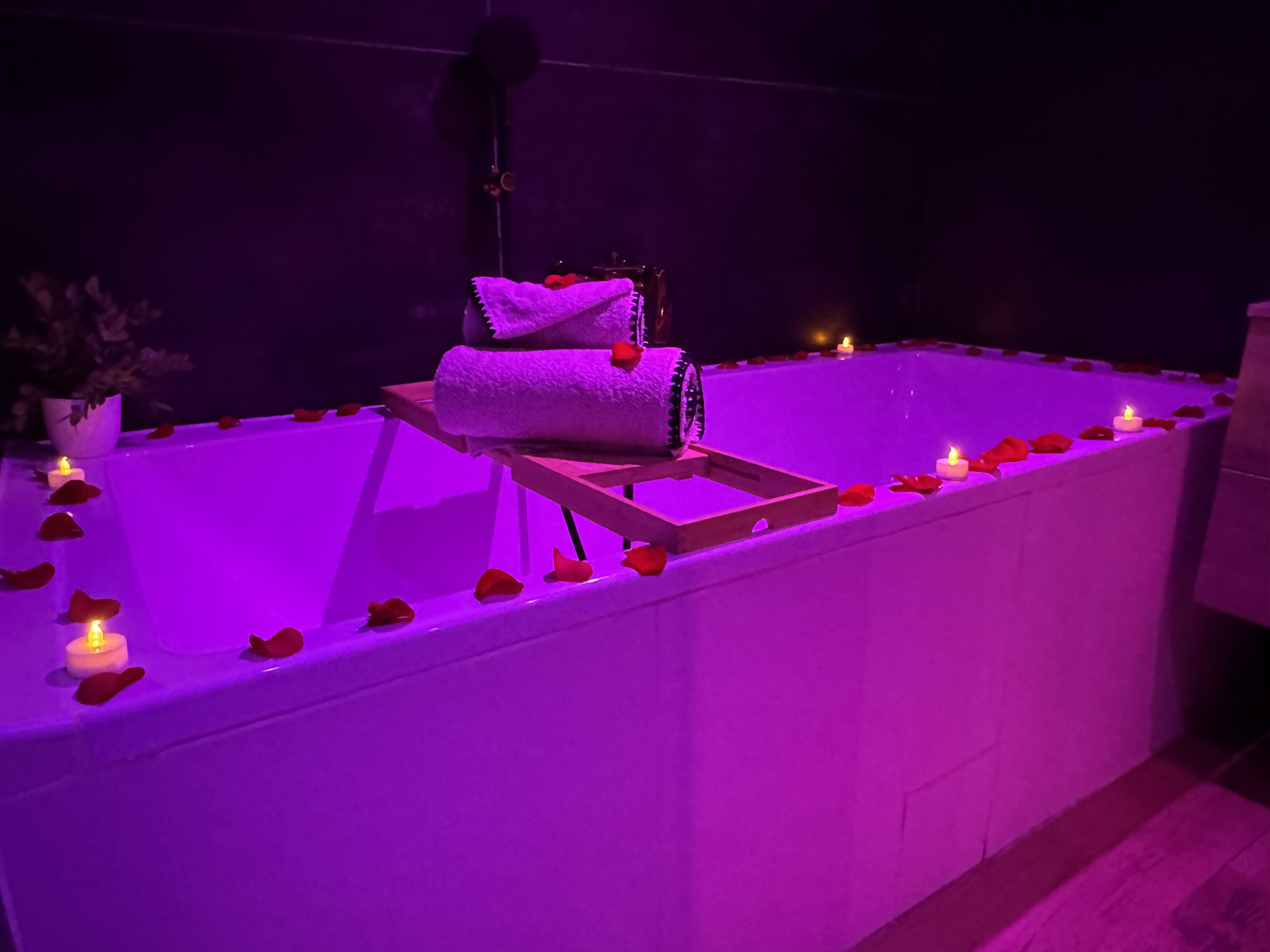 Ce cocon de 90 m² entièrement privatisé vous promet un moment hors du temps, entre détente et passion. Profitez d’un jacuzzi 5 places haut de gamme couvert et chauffé, d’une baignoire duo XXL, et d’une petite piscine d'été privative sans vis-à-vis pour un séjour inoubliable.