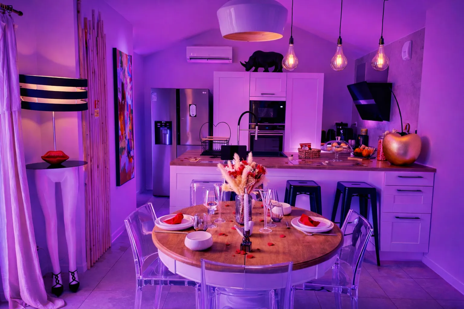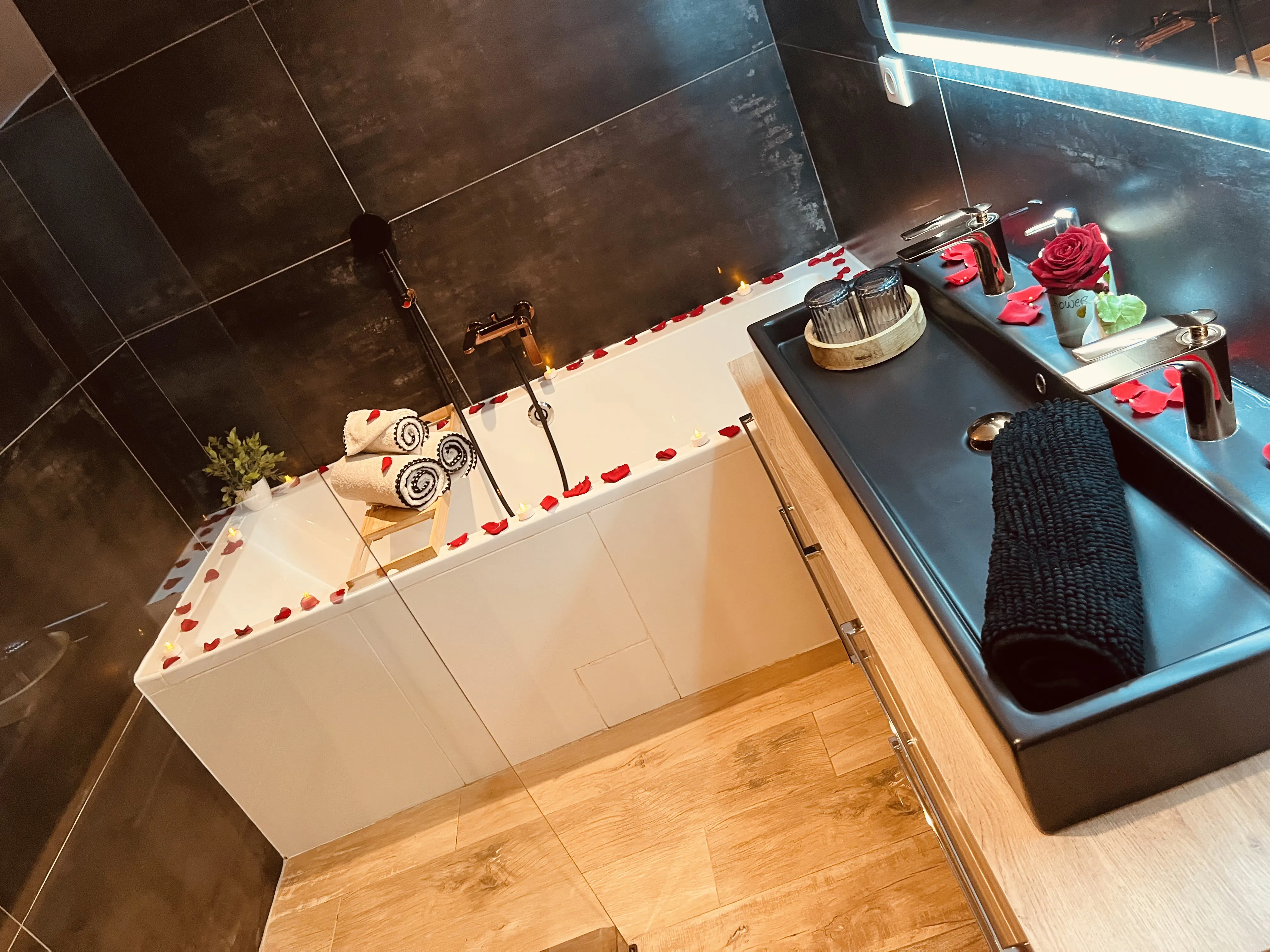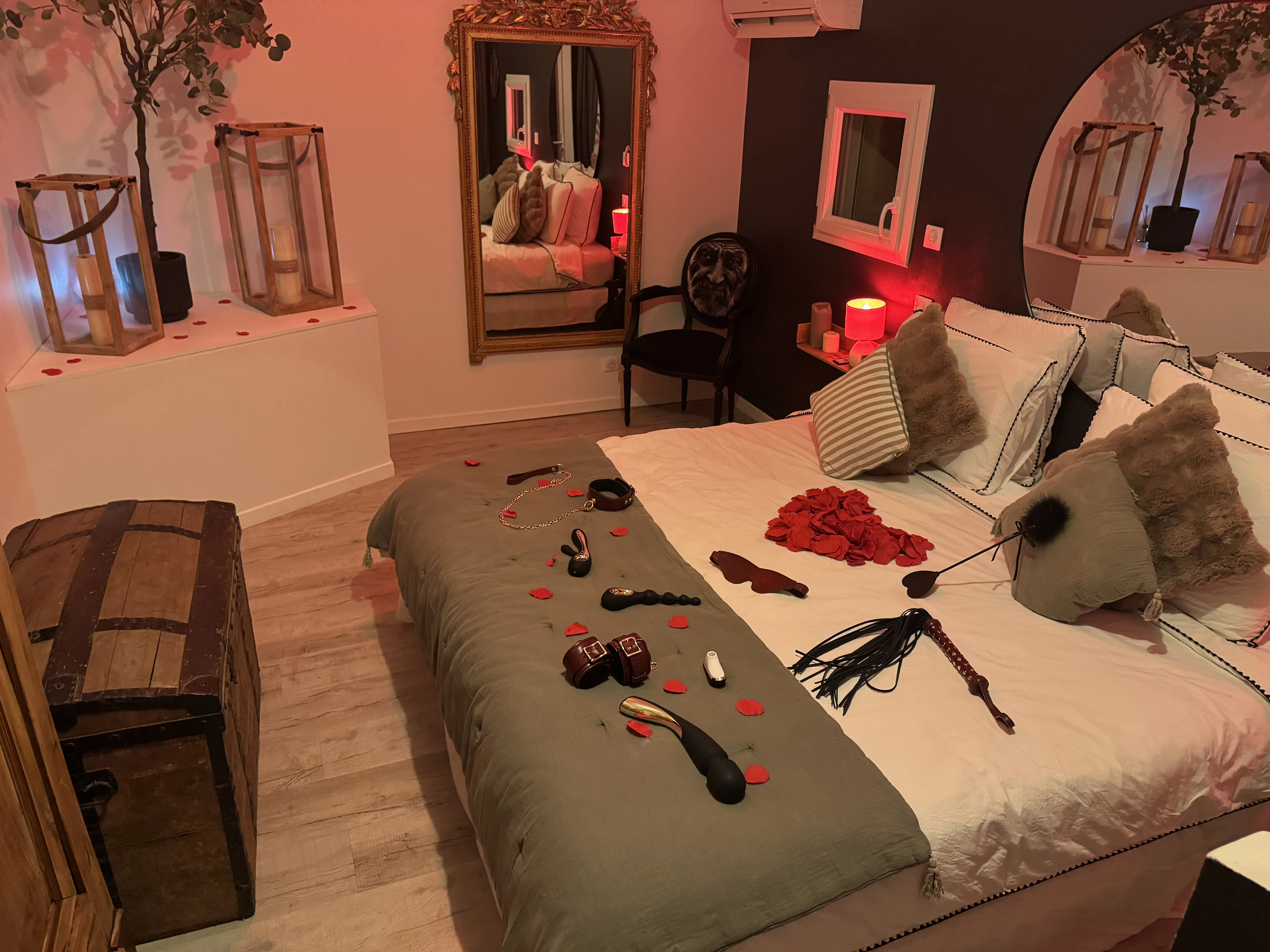 Offrez-vous une escapade sensuelle et romantique dans Secret Désir, une love room d’exception située sur les hauteurs de Mons, à seulement 15 minutes de Toulouse. Ce cocon de 90 m² entièrement privatisé vous promet un moment hors du temps, entre détente et passion. Profitez d’un jacuzzi 5 places haut de gamme couvert et chauffé, d’une baignoire duo XXL, et d’une petite piscine d'été privative sans vis-à-vis pour un séjour inoubliable. Envie de pimenter la soirée ? Découvrez l’espace coquin inclus avec balançoire érotique, croix de Saint-André, fauteuil tantra, nombreux accessoires (sextoys, menottes, masque etc...) miroirs sur les murs ainsi qu'au plafond et jeux de lumière connectés. Des coffres coquins surprises sont également disponibles sur place pour vivre des expériences inédites dont une LOVE MACHINE. Côté confort, la maison dispose de deux chambres (lit king size et queen size), d’une cuisine équipée, et d’une décoration raffinée pensée pour la complicité. Personnalisez votre séjour avec nos options romantiques : pétales de roses, ballons, bouquet, bouteille de champagne... ✨ Une adresse unique pour raviver la flamme et partager un moment intense à deux… ou à quatre. Une caution ou contrat de location vous sera demandé(e) pour toute réservation