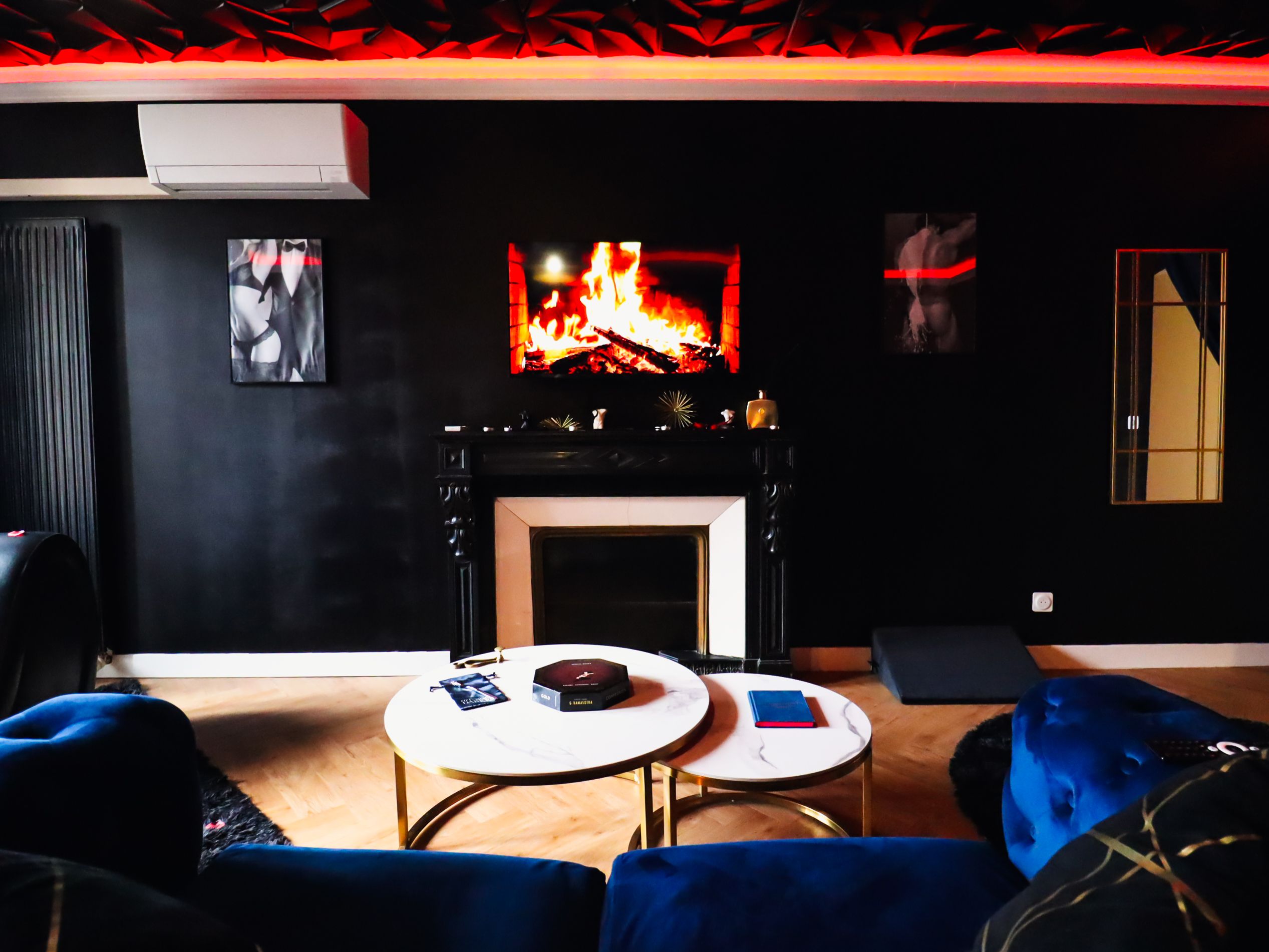 Cette love room de 55 m², décorée avec soin dans un esprit chic et feutré, vous plonge immédiatement dans une ambiance propice à la déconnexion.