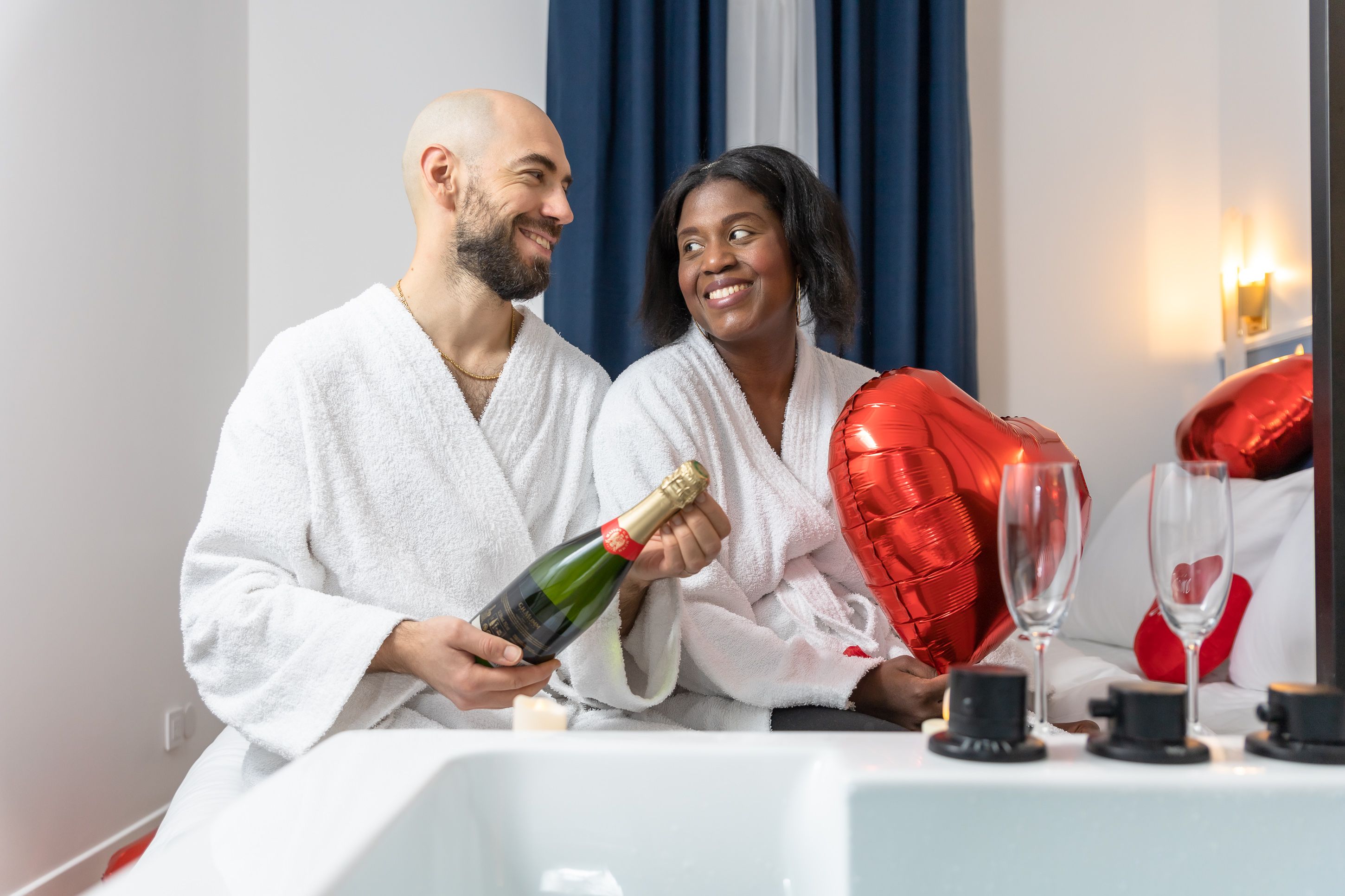 🛁 Suite Spa privative avec balnéo jacuzzi – ambiance hôtel premium pour un moment de relaxation à deux. (peignoirs, chaussons, gel douche...)