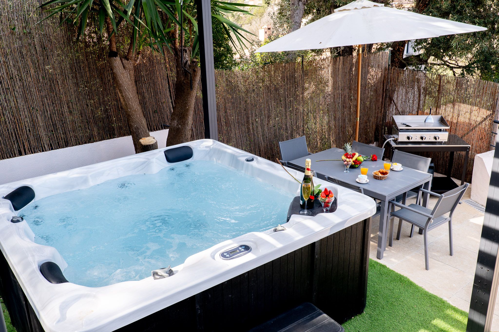 Le must pour les amoureux Un jacuzzi privatif accessible toute l’année, sous pergola, avec jets massants. Une bulle de bien-être pour des instants sensuels et inoubliables 💧